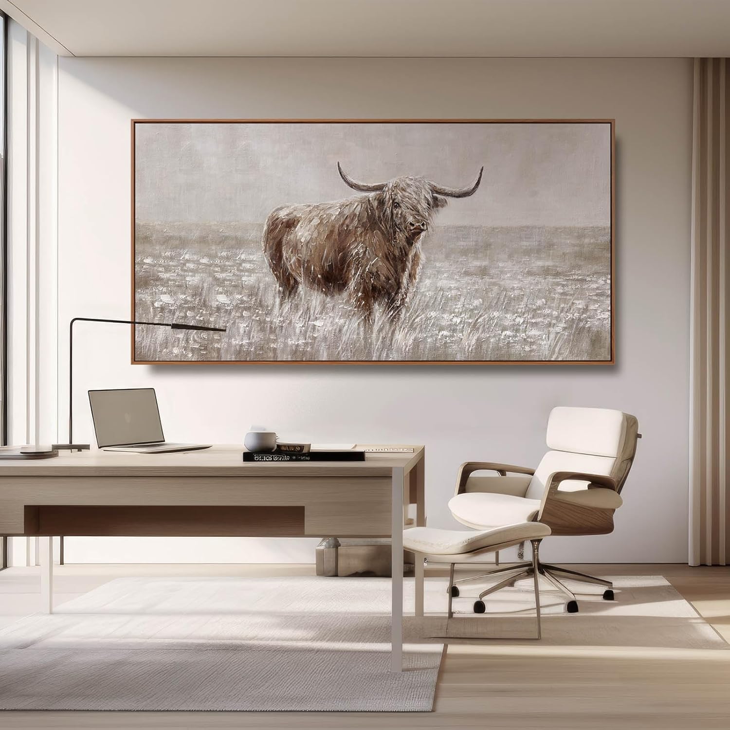- Canvas wall art size: highland cow artwork is 24x48, and the product art on the wall brings a different feeling to the space of the house.