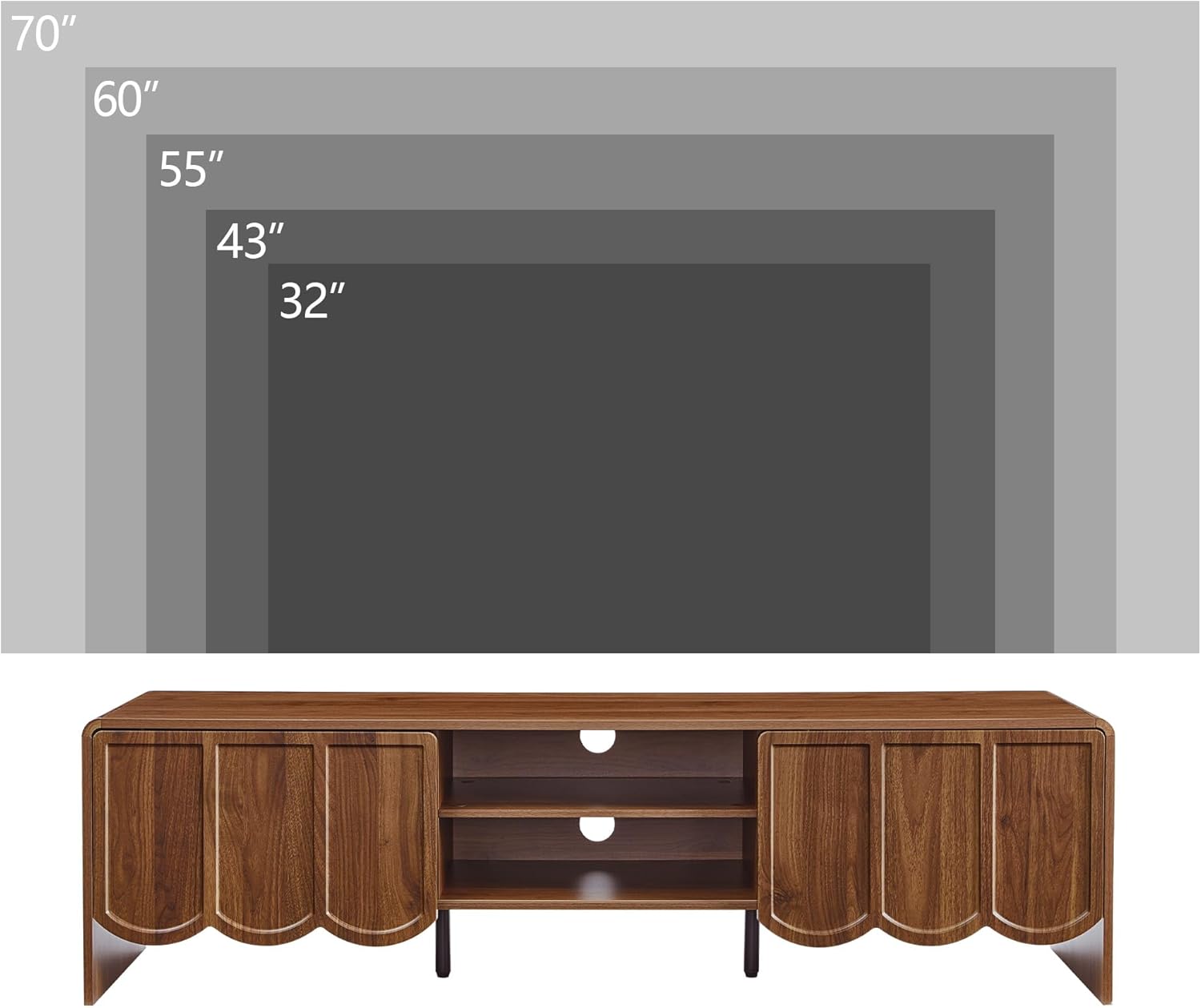 - Multi-Scene Use: Embrace versatility with our TV stand, capable of accommodating TVs up to 55 to 70 inches. With its adaptable dimensions and max weight capacity of 150lb, it serves as a TV stand in the living room, a sideboard buffet cabinet in the dining room, and a display console table in the entryway. Elevate every space in your home with one versatile piece!