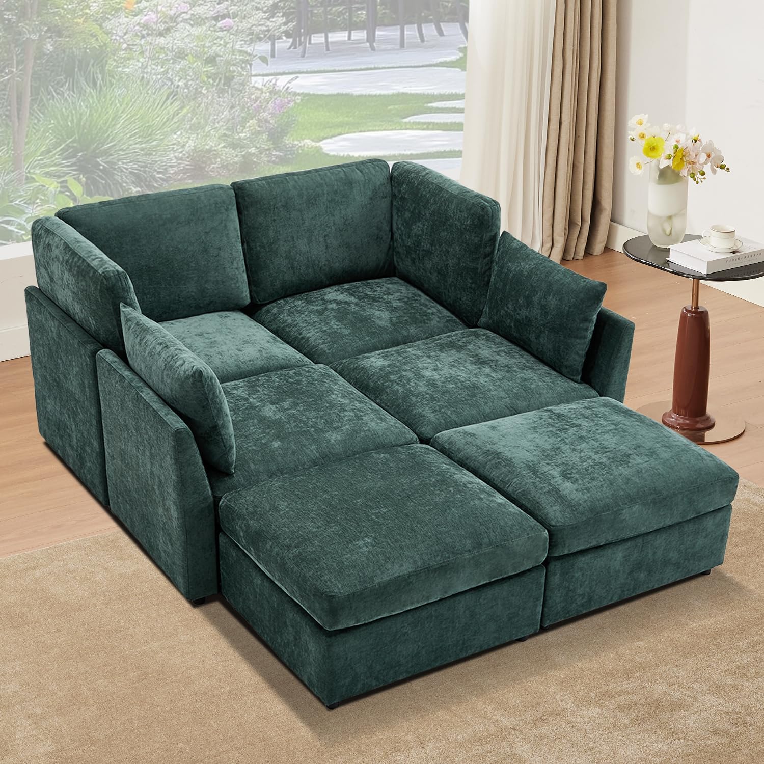 Tbfit Modular Sectional Couch, Sofa for Living Room,Chenille Cloud Couch with Ottoman 6 Seat, Green