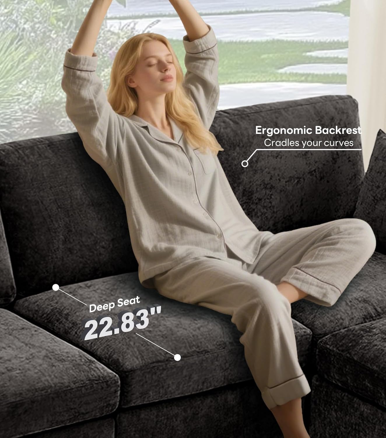 - Cloud-Like Comfort - Crafted with high-density foam and quality springs, this cloud couch delivers adaptive support, prevents sagging while maintaining shape. Enjoy balanced softness, pressure relief, and long-lasting durability—ideal for your living room. Relax in ultimate comfort!