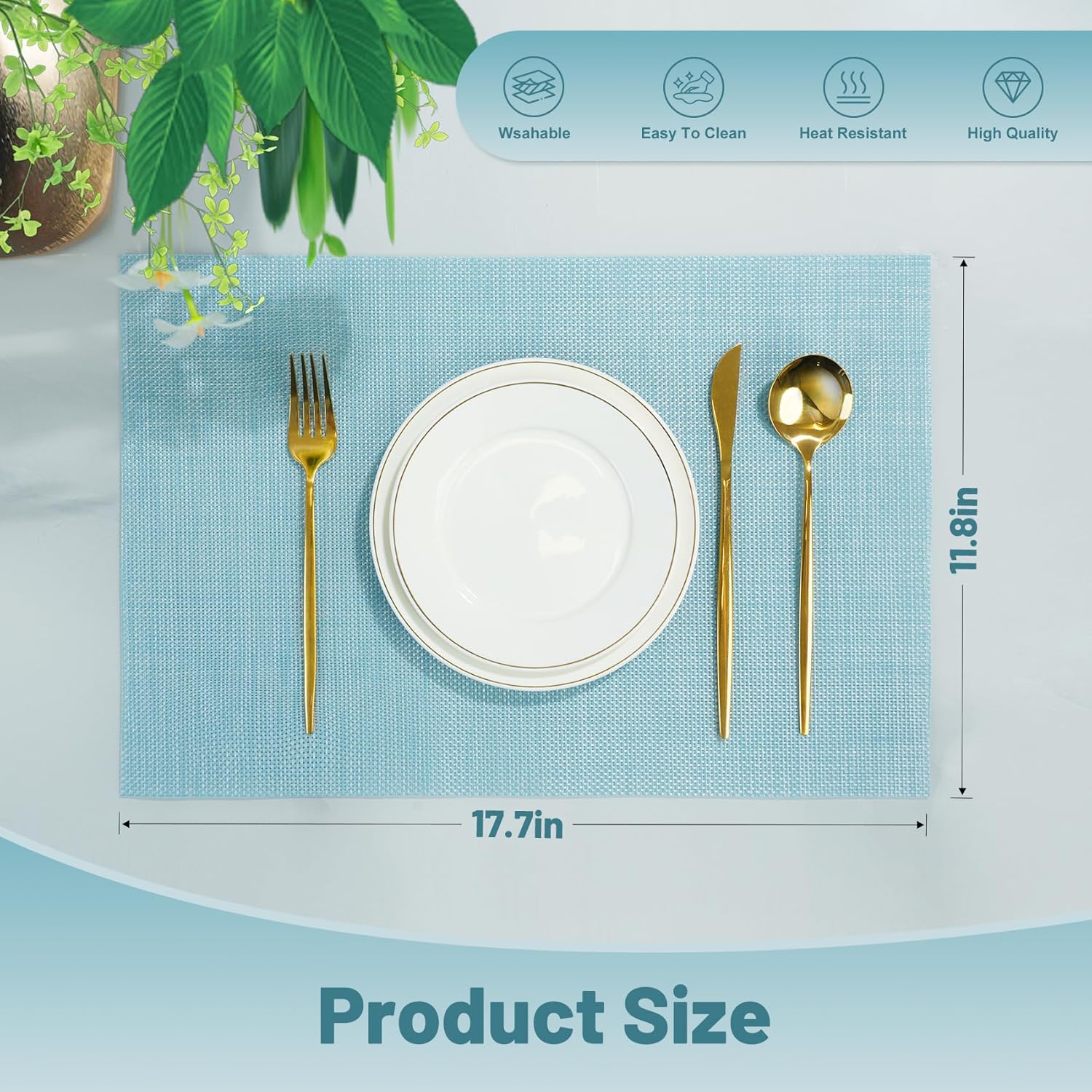 Placemats Set of 6,Non-Slip PVC Weave Table Mats Easy to Clean,Heat Resistant Place Mats for Kitchen Dining Table Decoration Indoor Outdoor,Blue