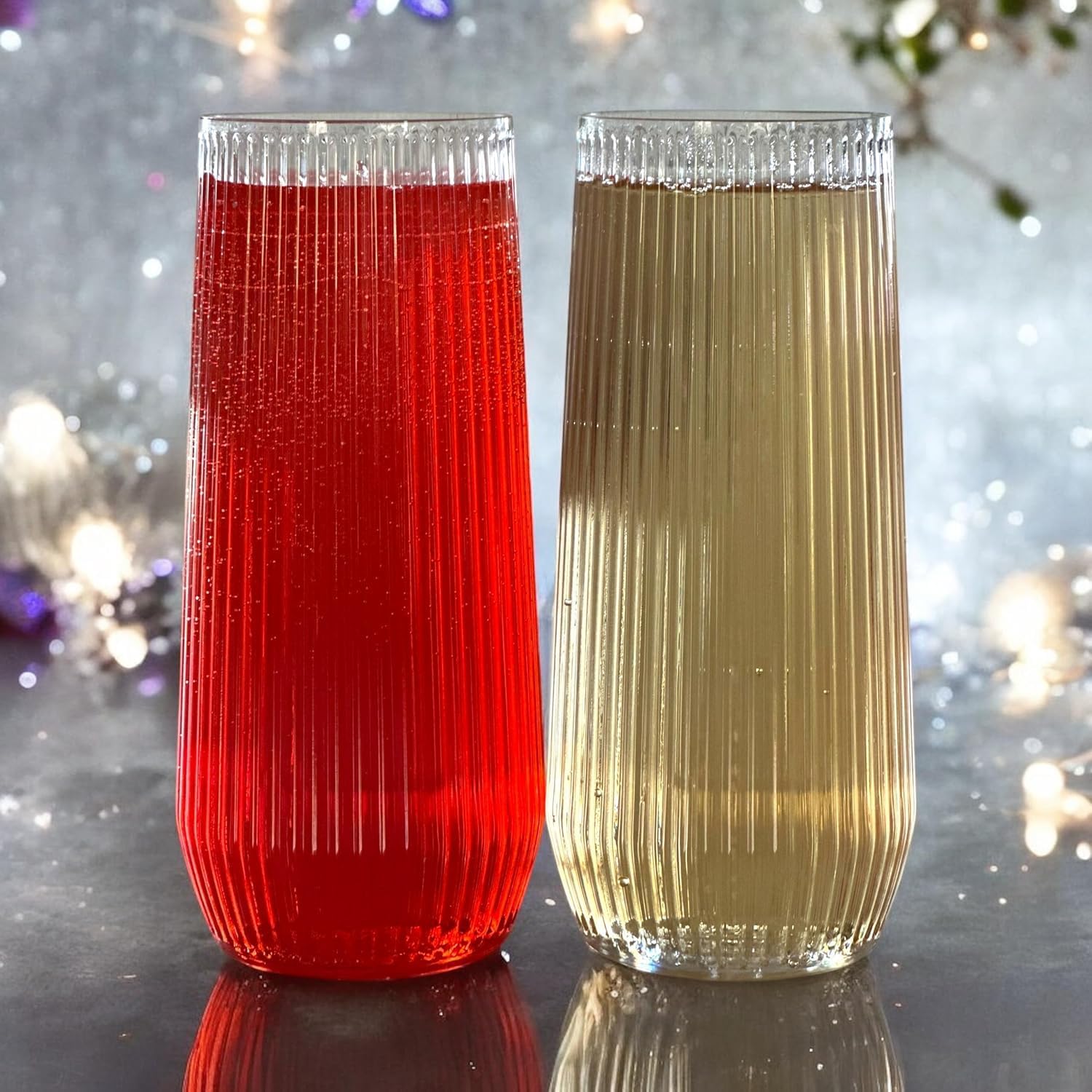 - Two Sizes in One Set: Includes 12 stemless 9 oz champagne flutes and 12 12 oz cups, offering versatile use for serving wine, champagne, whiskey, cocktails, and more.