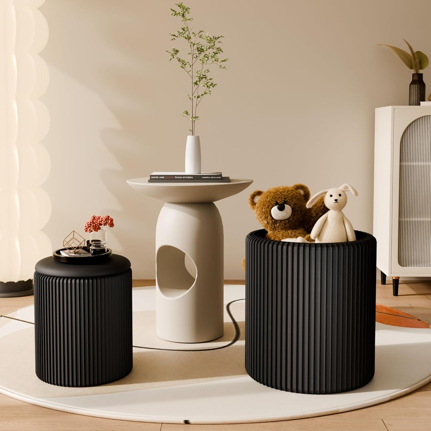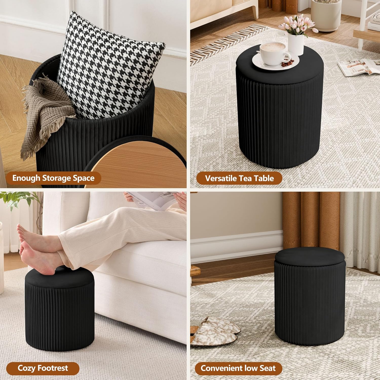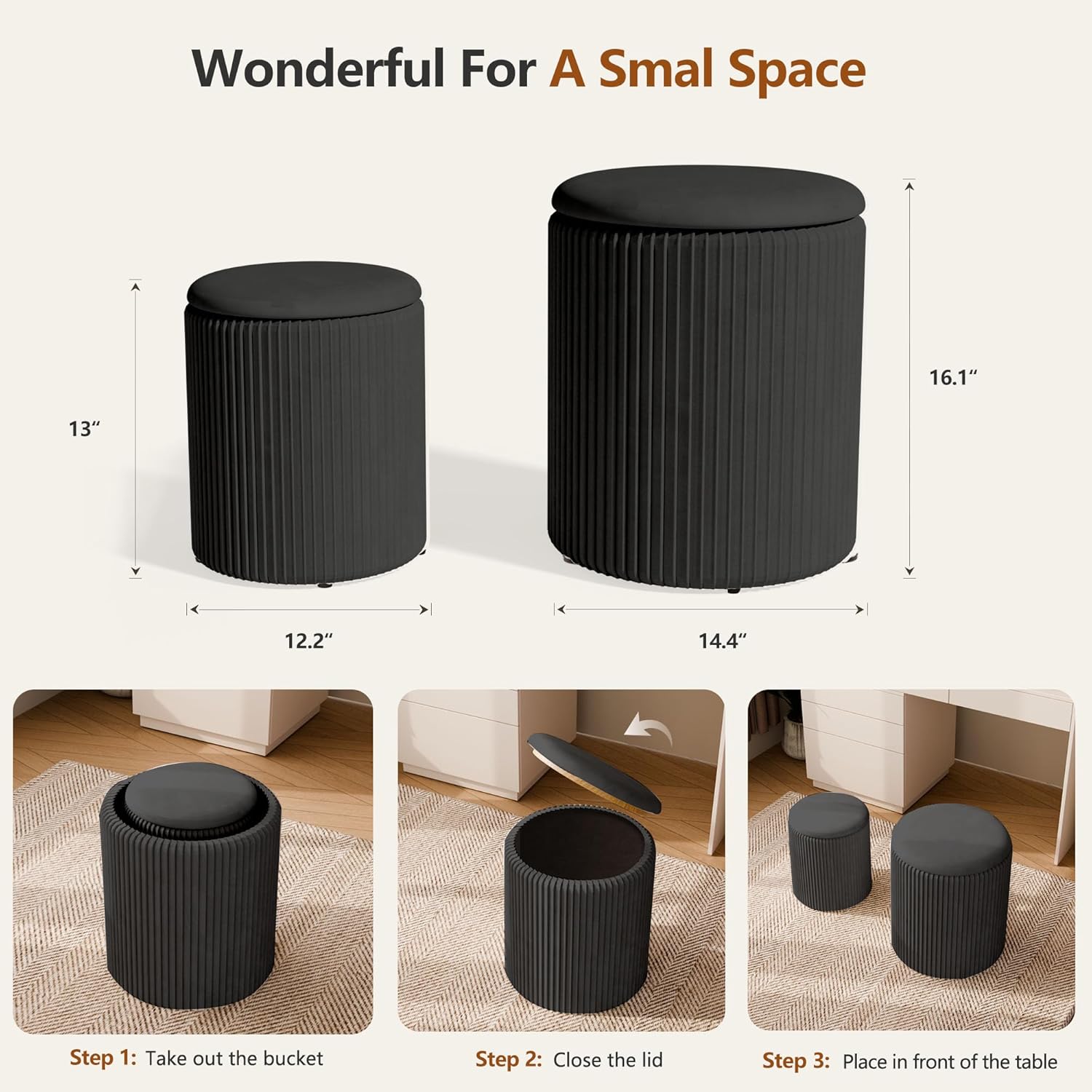 Ottoman with Storage Set of 2, Velvet Storage Ottoman, Upholstered Sponge Vanity Stool Support 300lbs, Multifunctional Coffee Table Foot Rest Ottomans for Living Room Bedroom, White