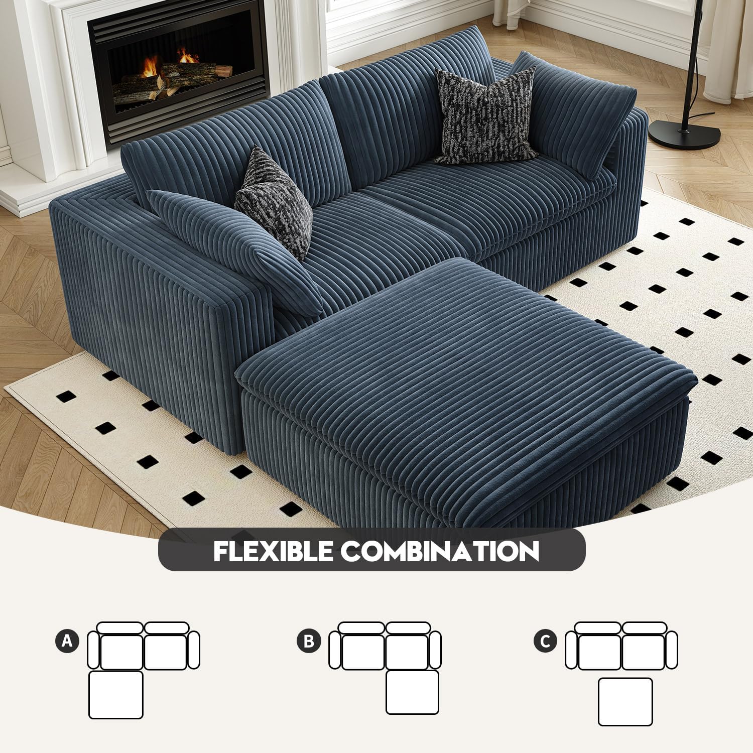 LoveSeat Cloud Couch Modular Sectional Sofa for Living Room,Modern Sofa with Deep Seat,2 Seater Boneless Couch with Ottoman,Comfy Upholstered Couches for Apartment, Studio, Office,Bedroom,Blue