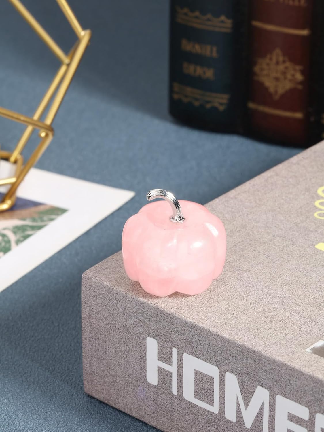 Jovivi Rose Quartz Crystal Pumpkin Figurine, 1.2" Mini Carved Gemstone Pumpkin Statue Decor Healing Stones Decorative Ornaments for Fall Harvest Thanksgiving Halloween Decorations Home Decor