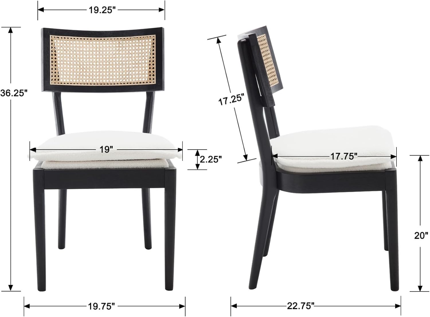 Rattan Dining Chairs Set Of 4 , Mid Century Modern Black Wooden Cane Back Chairs with Removable Sherpa Cushion , Retro Farmhouse Upholstered Kitchen & Dining Room Chairs for Restaurant Living Room