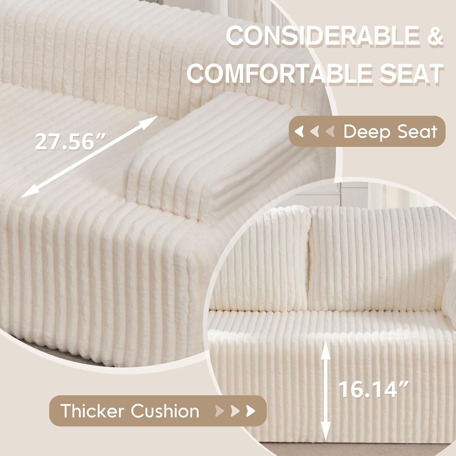 - Comfortable Sectional Couch: The boneless couch is made of breathable fabric and high-resilience memory foam with removable back cushion and neck pillow, providing you with a super comfortable experience. The anti slip design at the bottom ensures the stability of the sofa. The comfy cloud sofa cover is machine washable and can be cleaned when dirty.