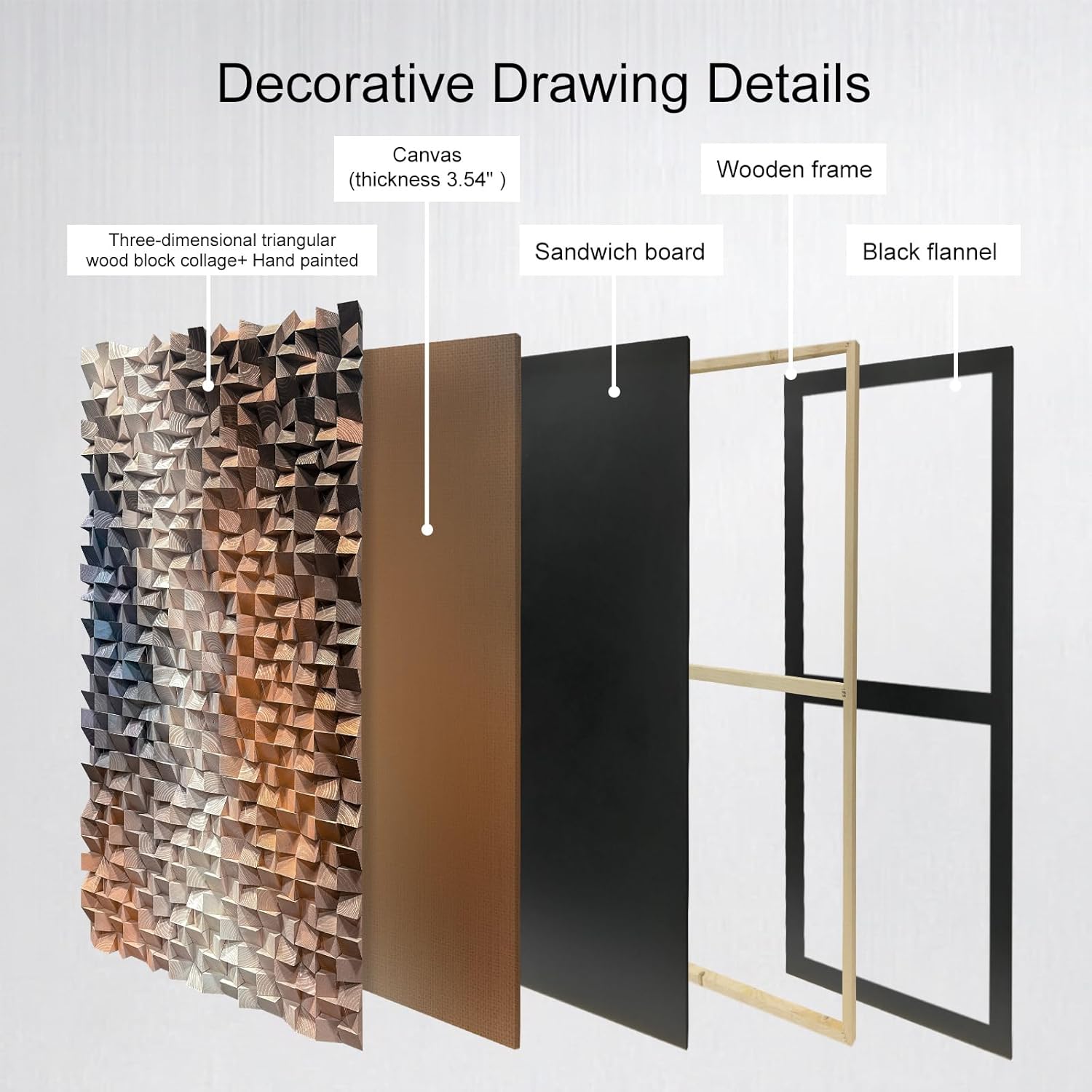 LIUZEYUE - 3D Wood Wall Art Decor Hand Crafted Wooden Blocks | Geometric Sculpture Art Modern Home Office Wall Art Easy Installation 39.4"x78.7"