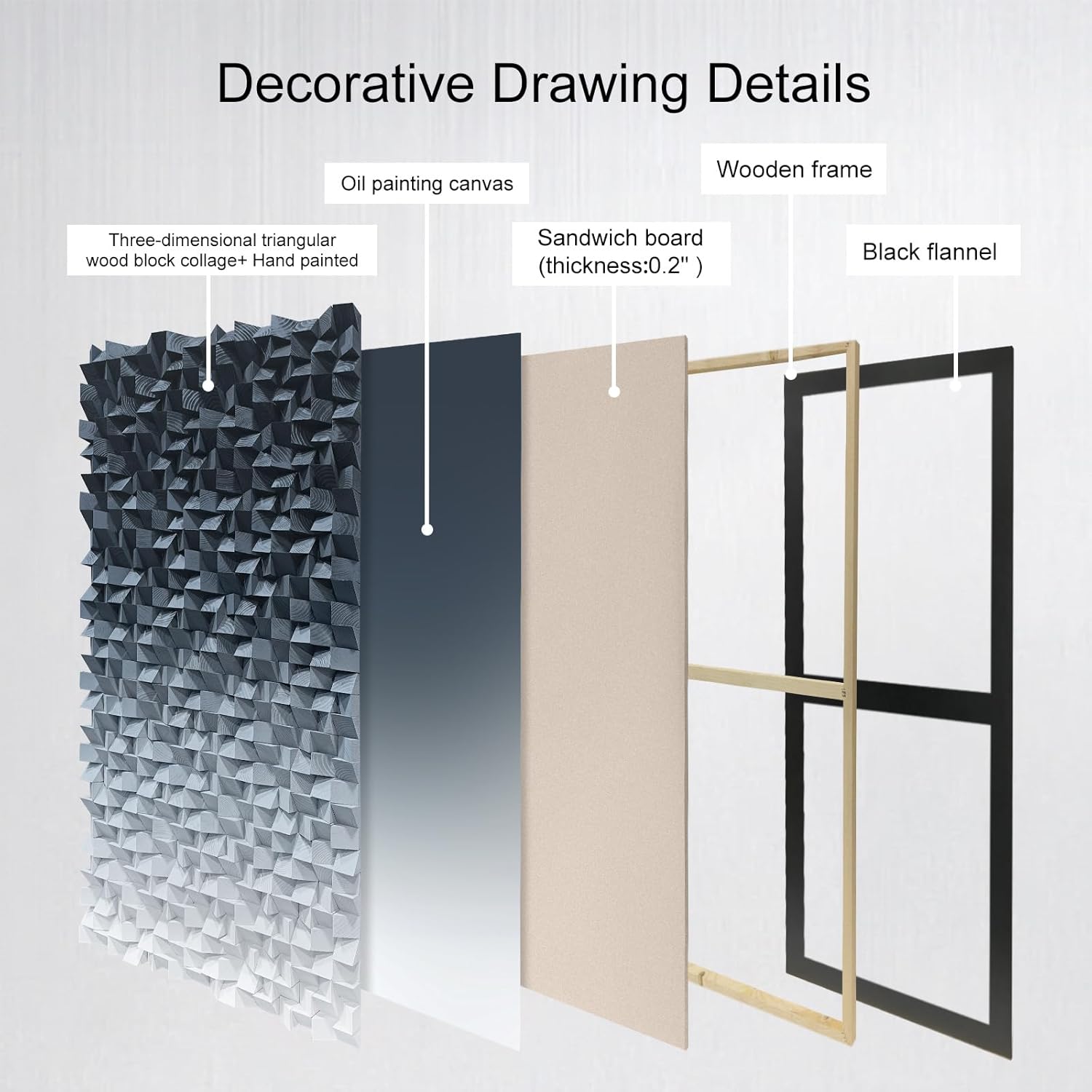 - Eye catching exterior dimensions: This decorative wall panel measures 23.6 x 47.2 inches, perfectly sized to quickly capture attention. Its surface is composed of numerous triangular pine blocks forming a unique array, and the blue and white gradient color transitions from deep blues to pure white, like the fusion of sky and sea of clouds, injecting freshness and vitality into the space.