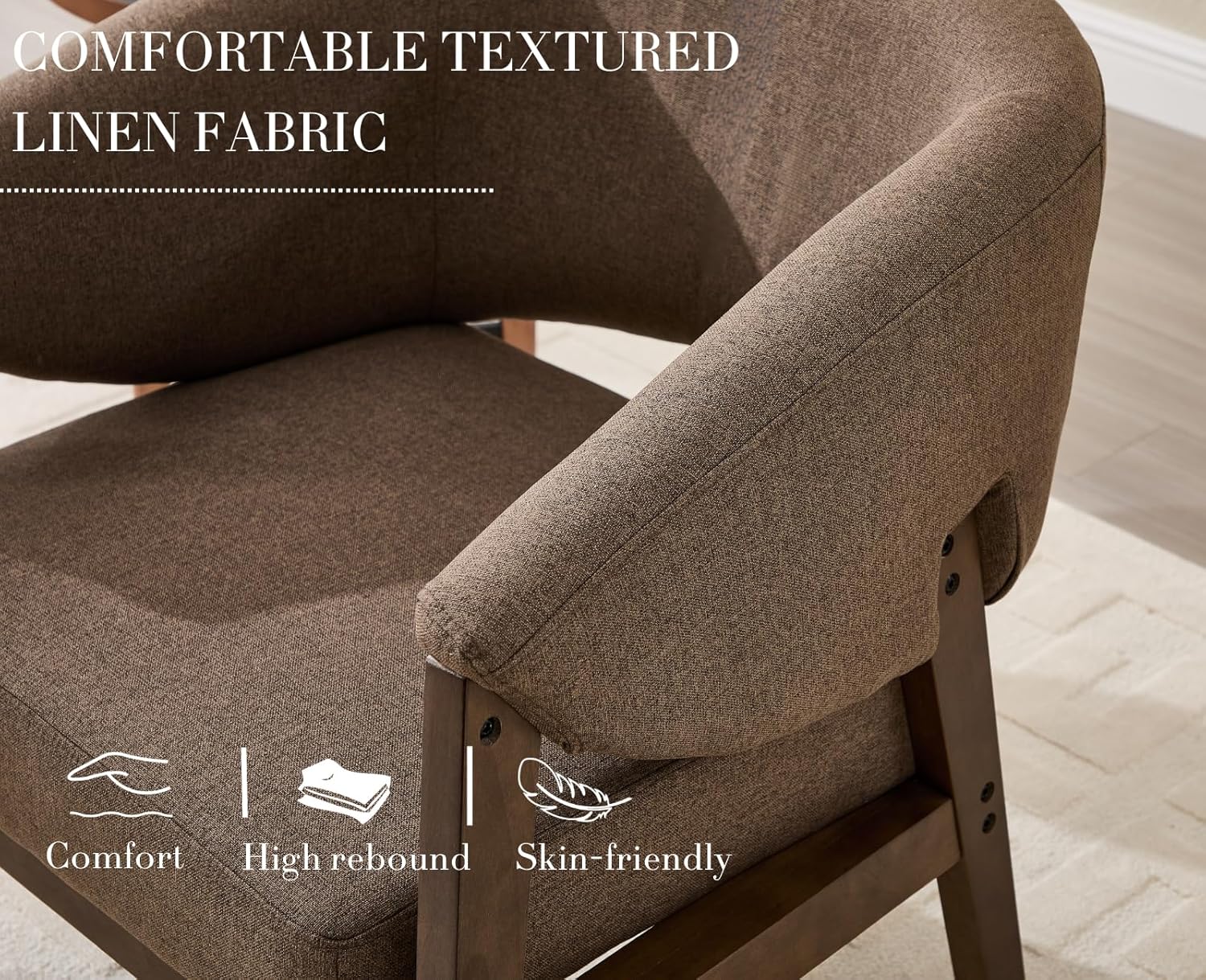 Mid-Century Modern Accent Chair, Comfy Barrel Armchair with Wide Seat, Upholstered Lounge Chair with Walnut Wood Legs for Living Room/Bedroom/Reading Corner, Linen Fabric, Brown, 1PC