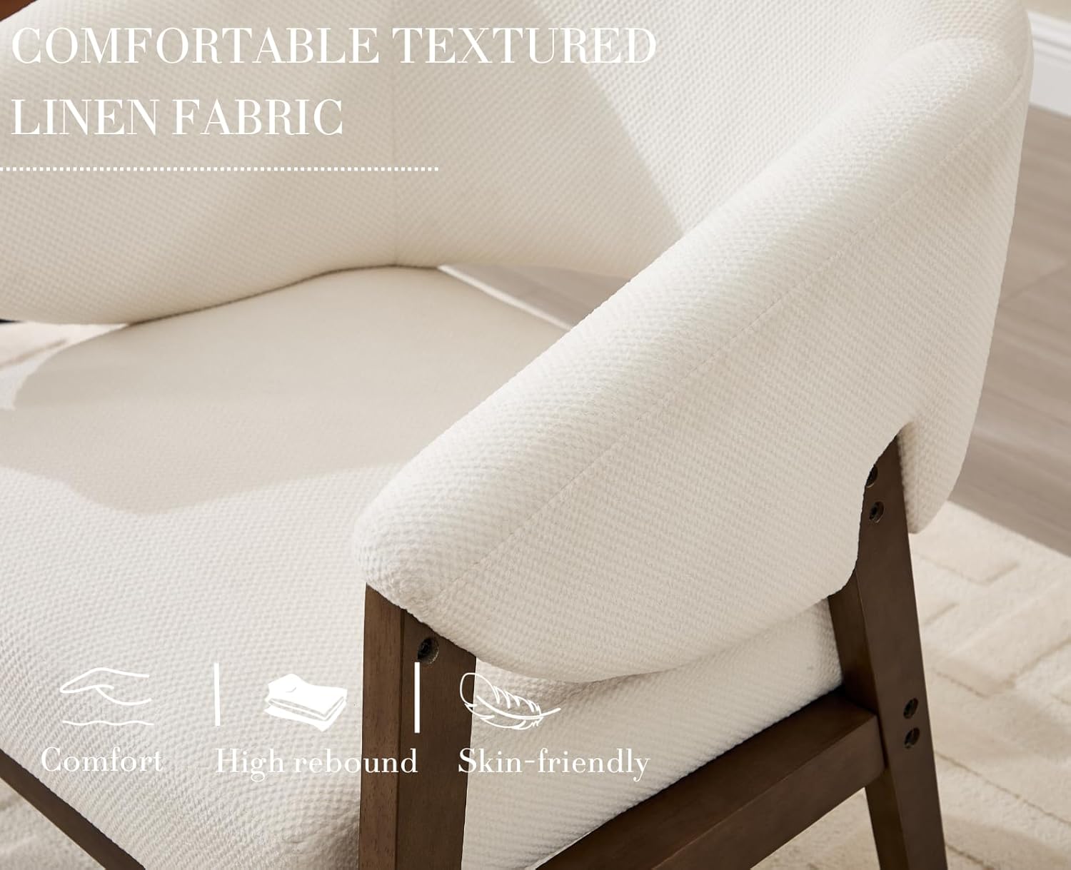Mid-Century Modern Accent Chairs Set of 2, Comfy Barrel Armchairs with Wide Seat, Upholstered Lounge Chairs with Walnut Wood Legs for Living Room/Bedroom/Reading Corner, Chenille, Beige