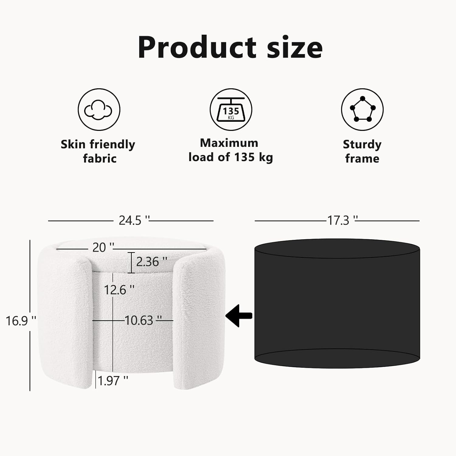 Furniliving Upholstered Button Tufted Round Ottoman, Ottoman with Storage, Teddy Footrest Stool, Removable Lid Convenient Footstools, Bedroom Ottomans with Storage for Vanity, Living Room, White
