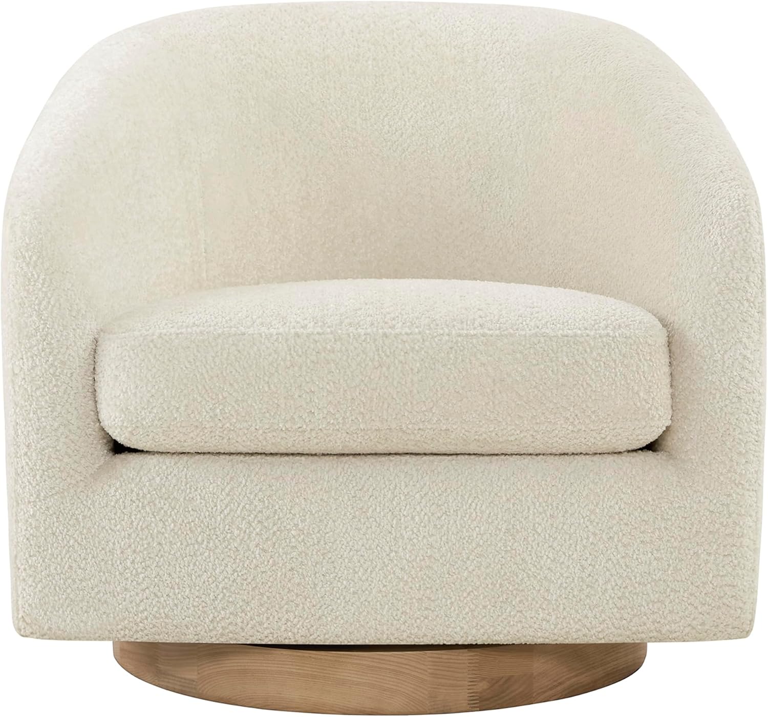 CHITA Swivel Accent Chair, FSC Certified Upholstered Fabric Barrel Chair for Living Room, Fully Assembled, Cream