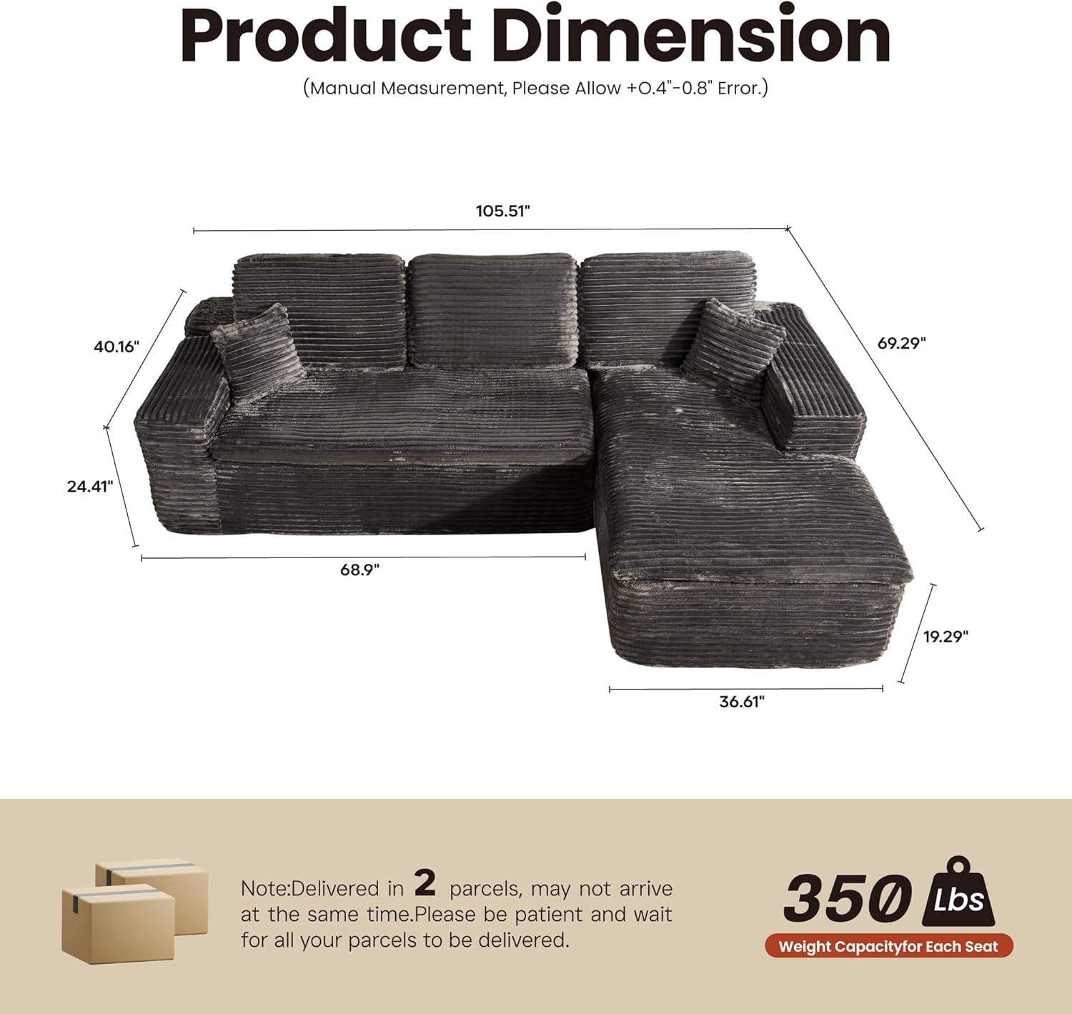• Comfy Chaise Couch:Bask in unparalleled luxury with our interchangeable sofa collection, which embodies a spacious, cloud-like seating sensation. Revel in supreme ease with our couch with 70" lounge chaise, meticulously crafted from high resilience foam architecture and coil spring reinforcement