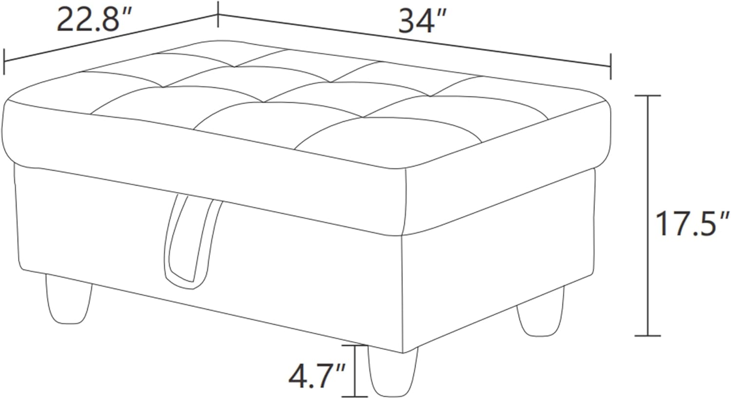 - DIMENSIONS: Measuring 34" L x 22.8" W x 17.5" H, this storage ottoman is perfectly sized to fit effortlessly into your space. With a weight capacity of up to 300 lbs, it offers both style and durability, serving as a sturdy seating option or reliable storage solution for your home.