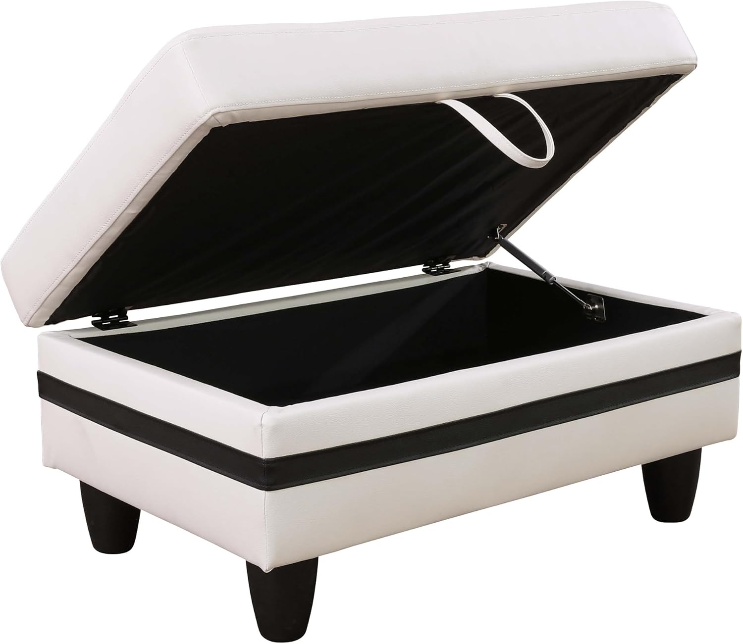 Ottoman Rectangular Storage Ottoman Bench, Faux Leather Footrest, Coffee Table, Stool Footstool with Hinged Lid for Living Room, Bedroom, Entryway, White&Black, 34"x22.8"x17.5"