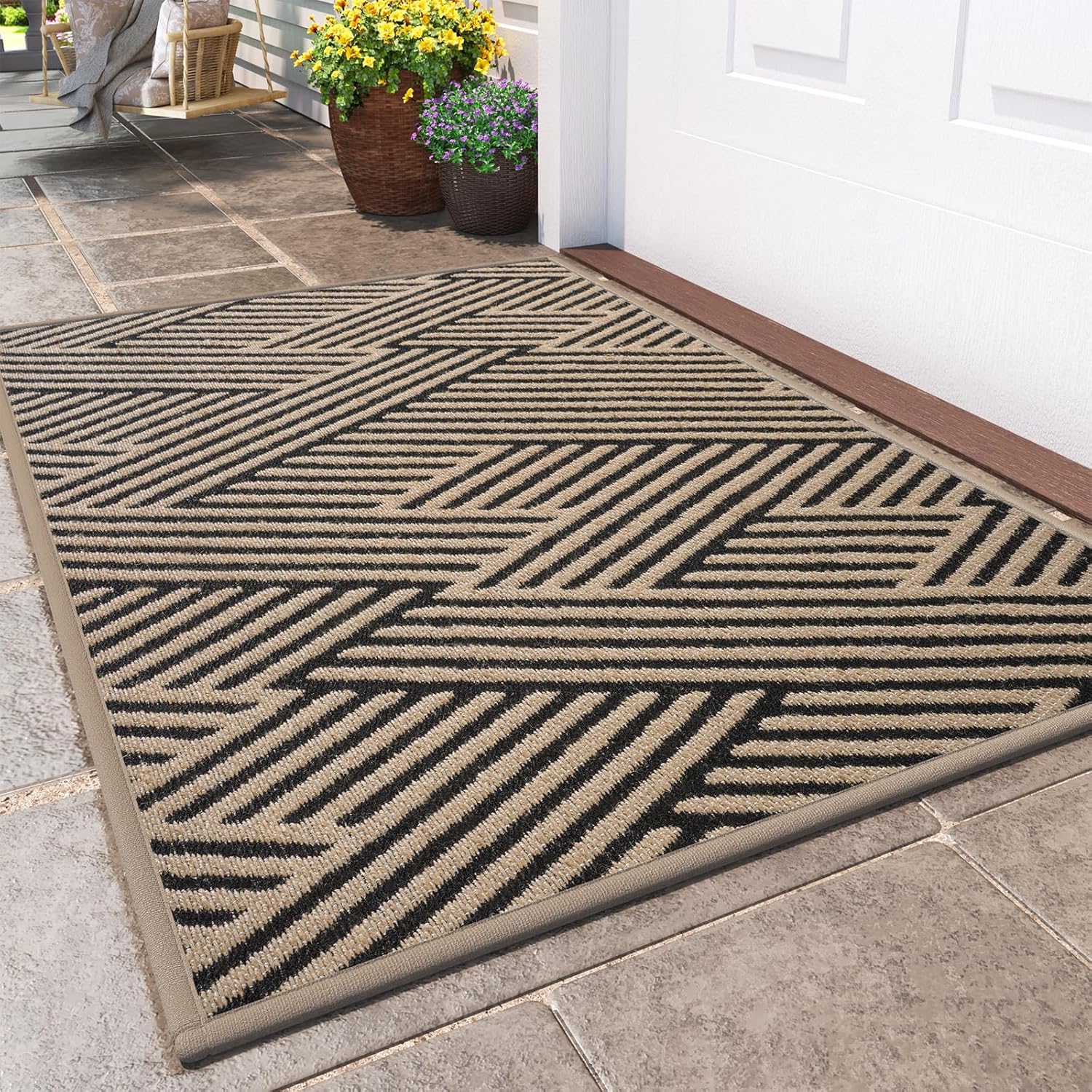 Front Door Mat Outside Entrance, Non Slip Rubber Backing, Trap Dirt and Moisture, Easy Clean Low Profile Welcome Floor Mats for Patio Porch Indoor Outdoor Entry Mat, 17x30 Inch, Brown