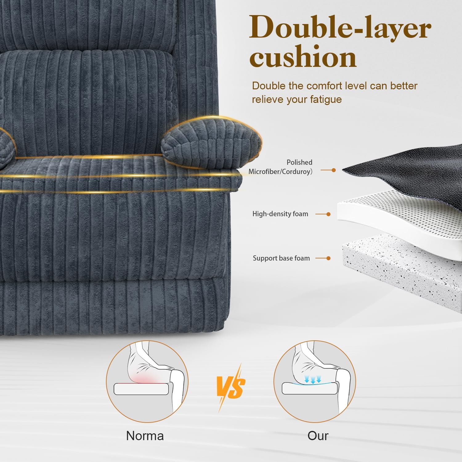 Recliner Chair for Adults, Oversized Manual Pull Tab Reclining Chair, 2-Tier Cushions, Minimalist Style Single Sofa for Living Room, RV (Corduroy)