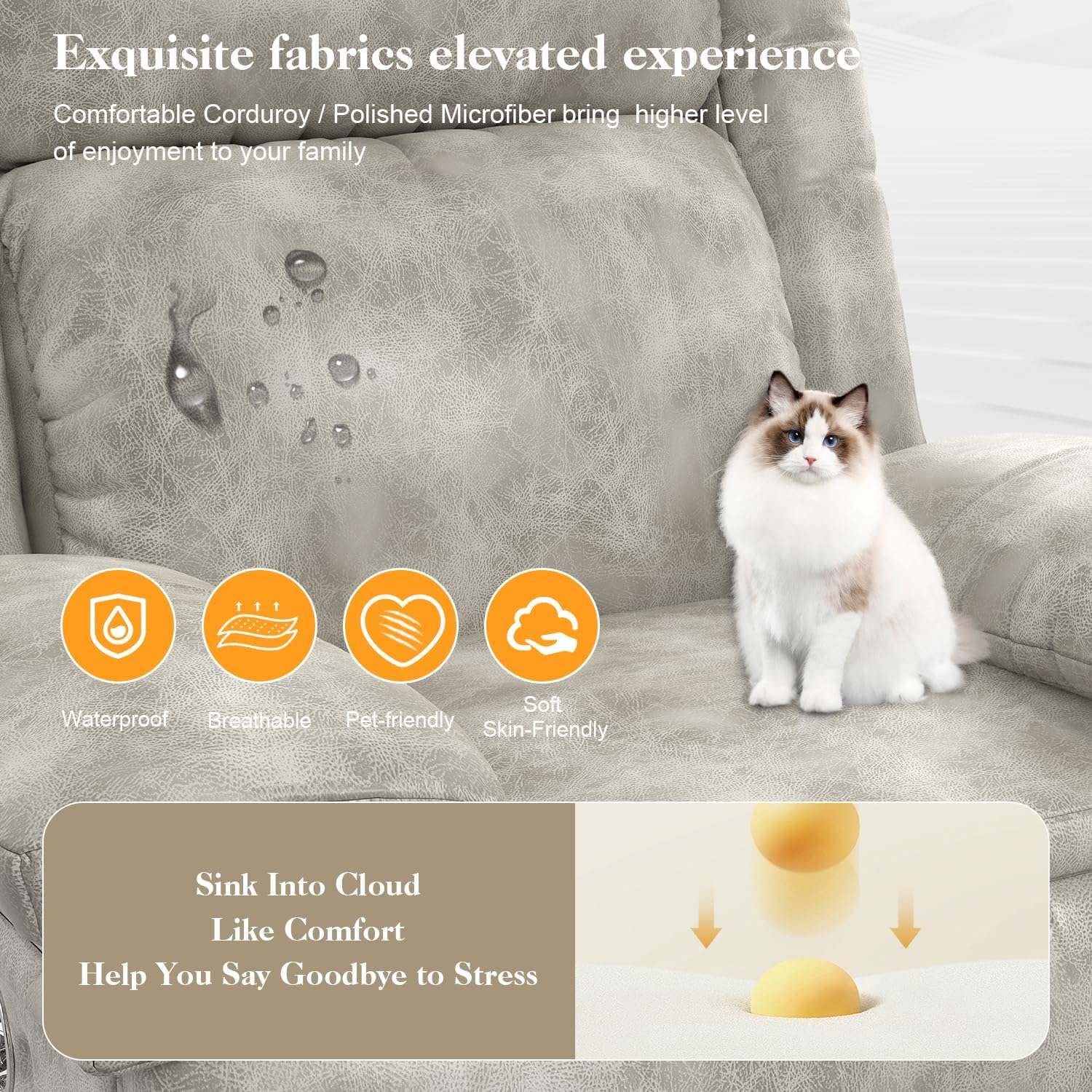 - Manual Recliner: The manual tilt design of the manual recliner chair eliminates the need to find a controller. The pull tab on the outside of the seat is within reach and very easy to use. The manual control eliminates the need to place the chair near a socket. There is no restriction on the use of the chair, and the failure rate is also lower