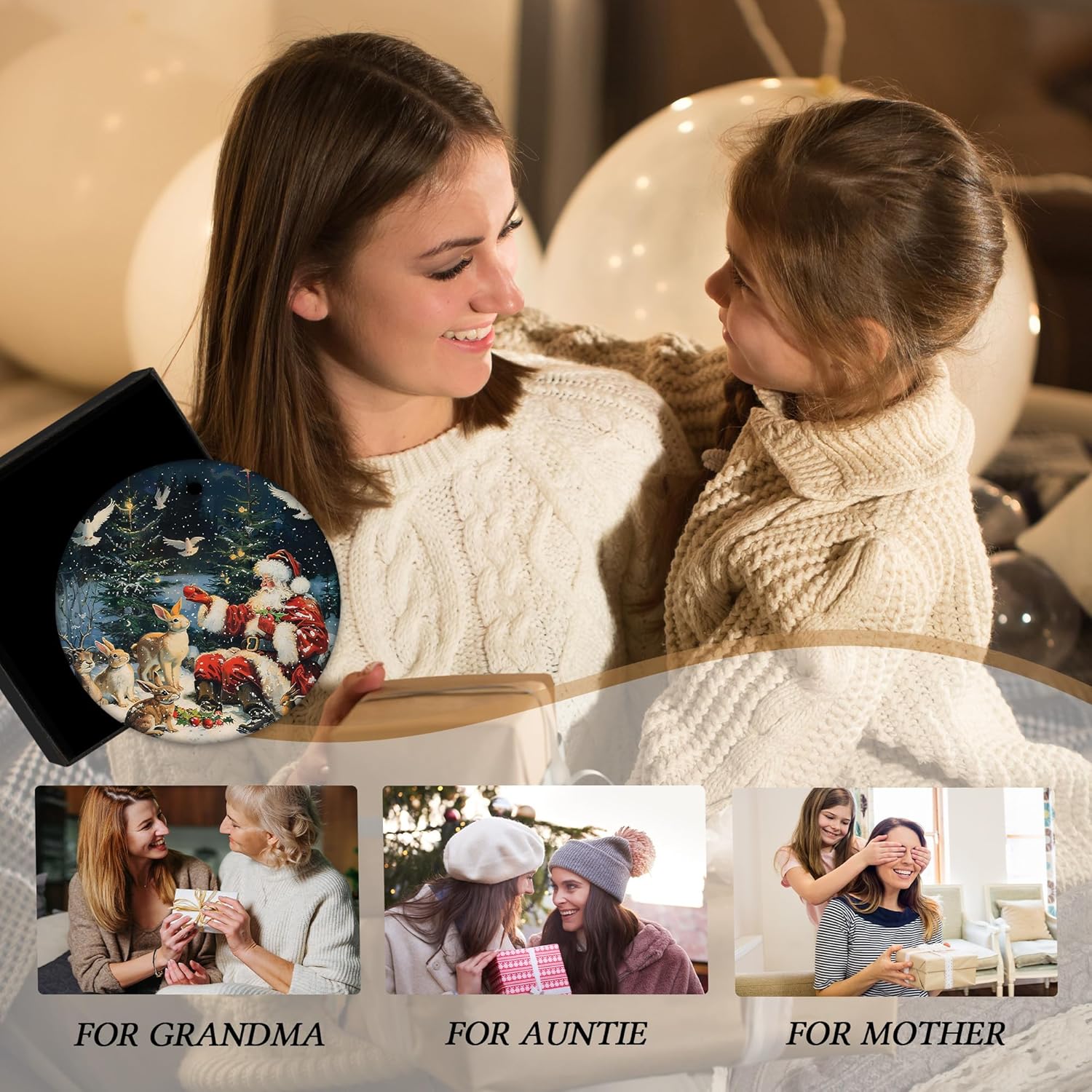 Vintage Christmas Santa Bunny Ceramic Ornament Gifts, Retro Rustic Winter Santa Bunny Decorative Hanging Ornaments for Xmas Tree Holiday Party Decoration, Winter Xmas Tree Decorations