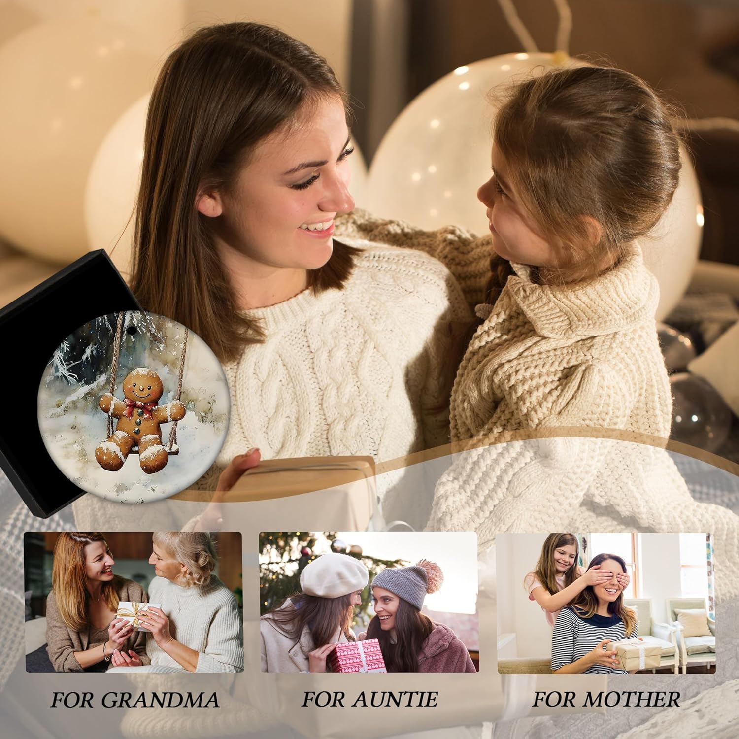Vintage Christmas Gingerbread Ceramic Ornament Gifts, Rustic Winter Gingerbread Swing Decorative Hanging Ornaments for Xmas Tree Holiday Party Decoration, Winter Xmas Tree Decorations