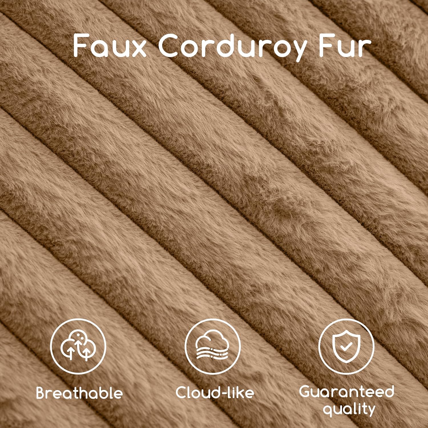 HIGOGOGO Round Stuffed Pouf Ottoman, Stripe Faux Fur Poufs with Foam Chunk Filling, Furry and Fluffy Pouf Foot Stool Storage Ottoman, 26 X 18 Floor Poufs Foot Rest for Living Room, Brown