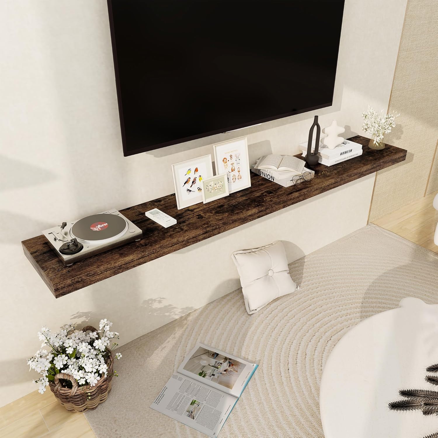 Fun Memories 72 Inch Floating Shelf, 12 Inch Deep Wall Shelf for Fireplace Mantel, Deep Storage Shelves for Home & Office, Wall Shelves with Invisible Bracket, Rustic Brown, Set of 1