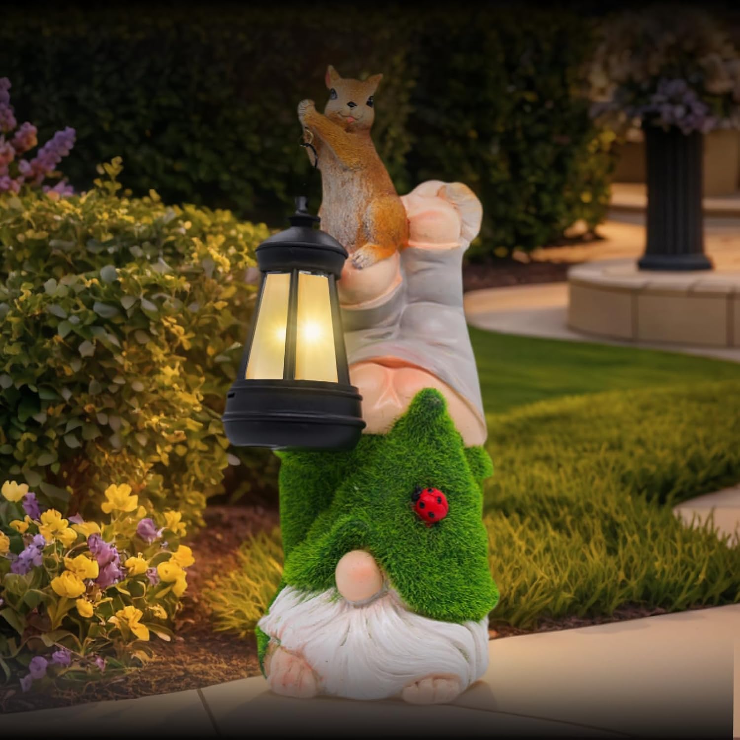 - [ Solar-Powered Garden Gnome Staute ] No wiring, auto-lighting. Charge 6-8hrs in sun, glows 8-10hrs at night
