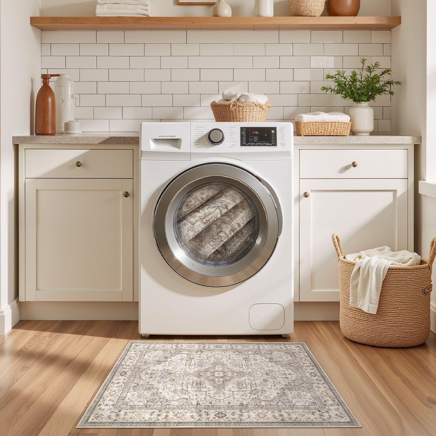 Washable Area Rugs for Living Room -2x3 Neutral Vintage Distressed Floral Farmhouse Boho Large Soft Floor Rug Indoor Non Slip Carpet for Bedroom Dining Room Office - Brown/Multi