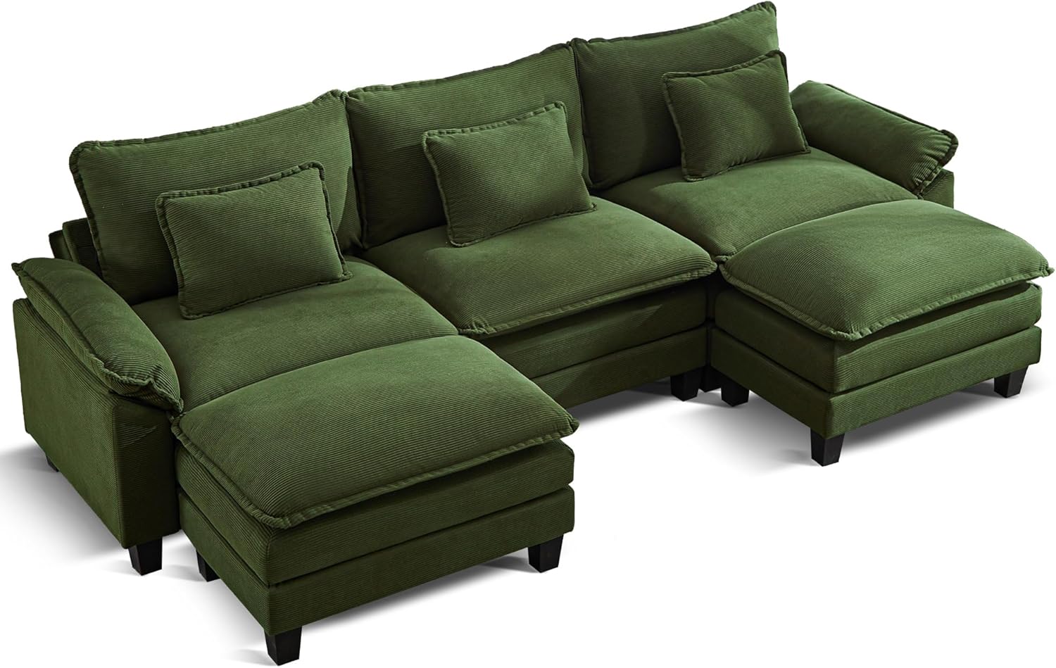 URRED Modular Sectional Sofa Comfy Cloud Couch, Modern Corduroy Sofa Sleeper Deep Seat Couches with Ottoman/Pillows for Living Room (Green, 117'' - U Shape)