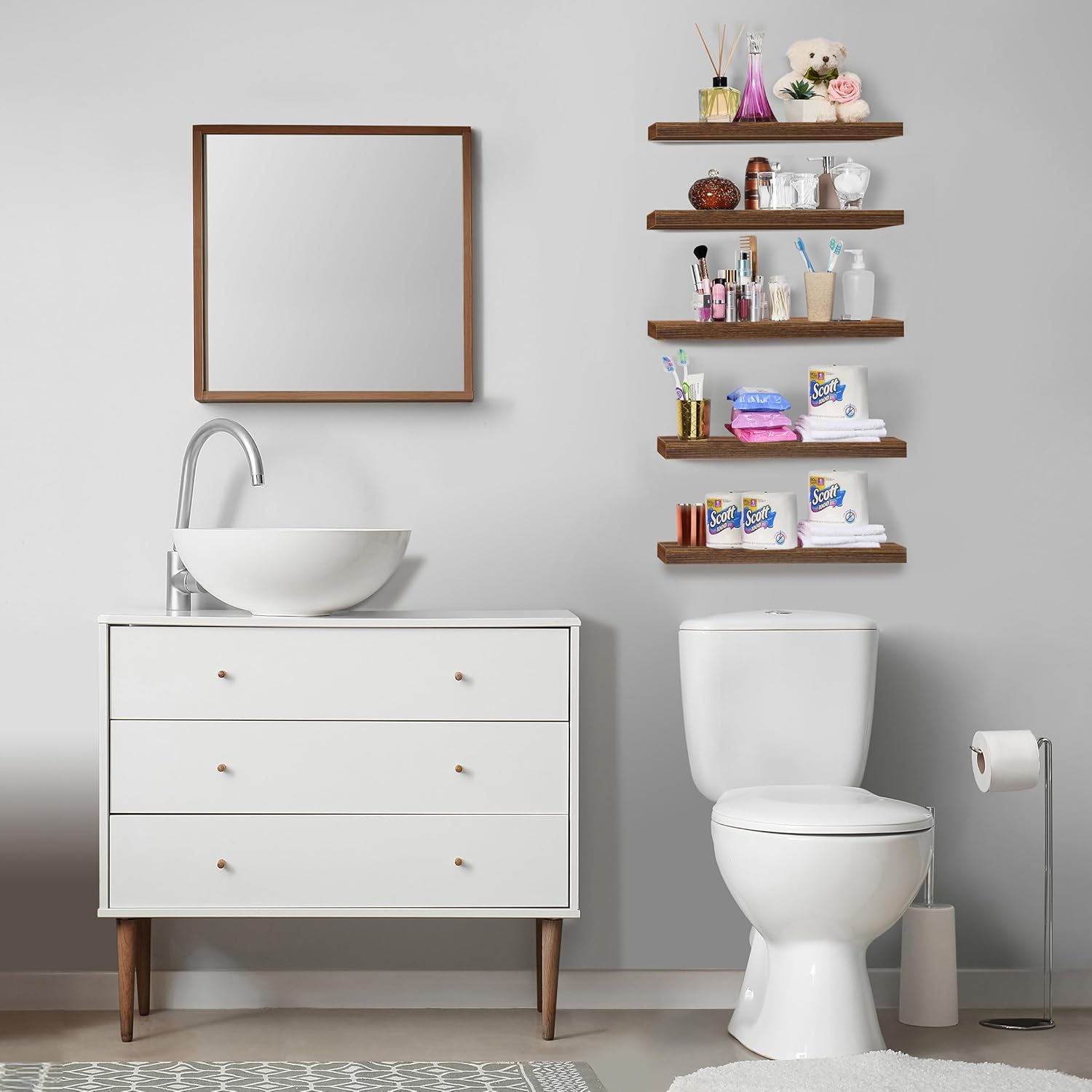Sorbus Floating Shelves for Wall, Bathroom Shelves Wall Mounted for Kitchen, Bedroom, Living Room, Bathroom Storage, Over Toilet, Hanging Book Shelf for Wall Home Decor (Walnut, 5 Pack)