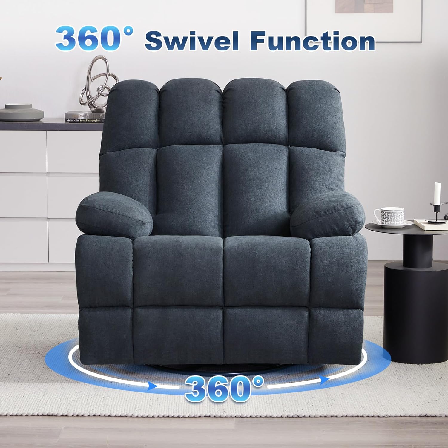 2PCS Oversized Recliner Chair, 360° Swivel Rocker Recliner for Big Man, Extra Wide Manual Recliner, Overstuffed Soft Rocking Sofa Chair for Living Room(Grey)
