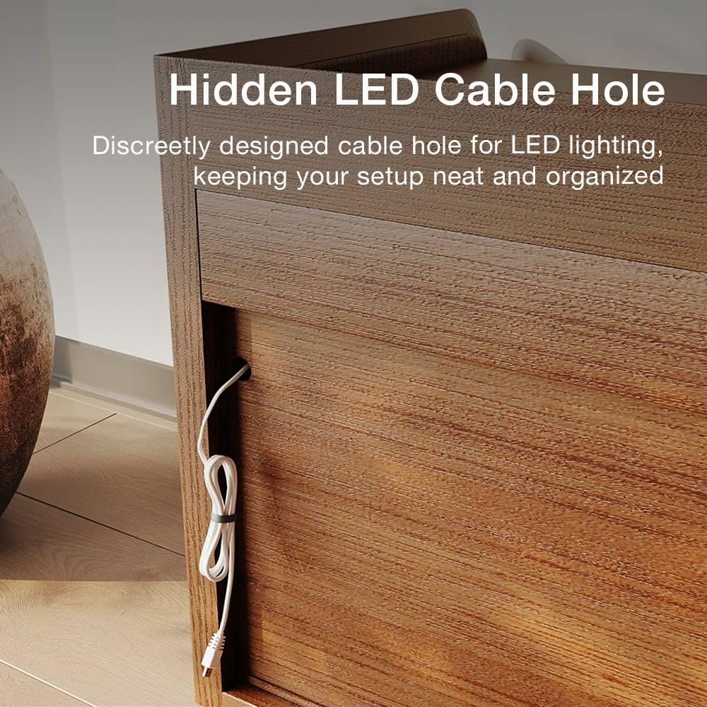 - Integrated LED Lighting: Enjoy the convenience of built-in LED lighting. The warm, 6-level adjustable lighting with remote control enhances the visual appeal of your TV console and makes your displayed items stand out