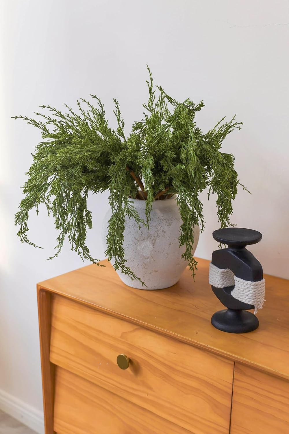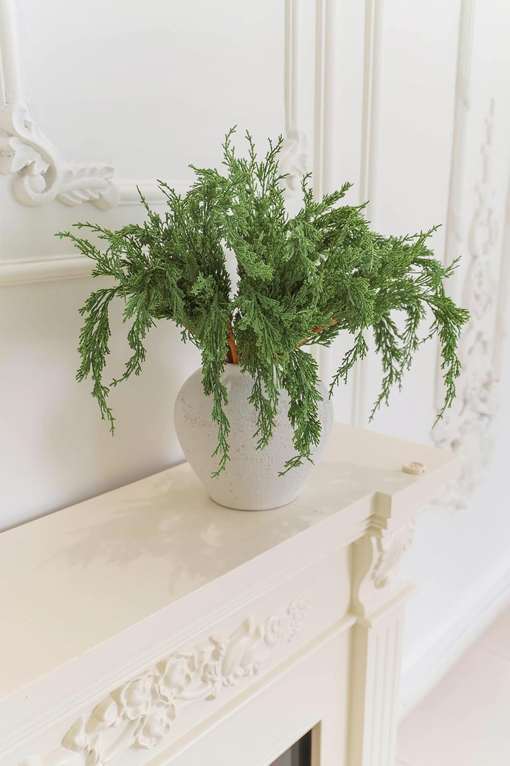 • 2. Premium Quality and Natural Appearance: Crafted from high-quality PE, these branches mimic the natural green color of real cedar, offering both aesthetic beauty and durability.After opening the package, simply let the product air out for a few hours to eliminate any initial odor, ensuring a better experience. Note: Vase not included.