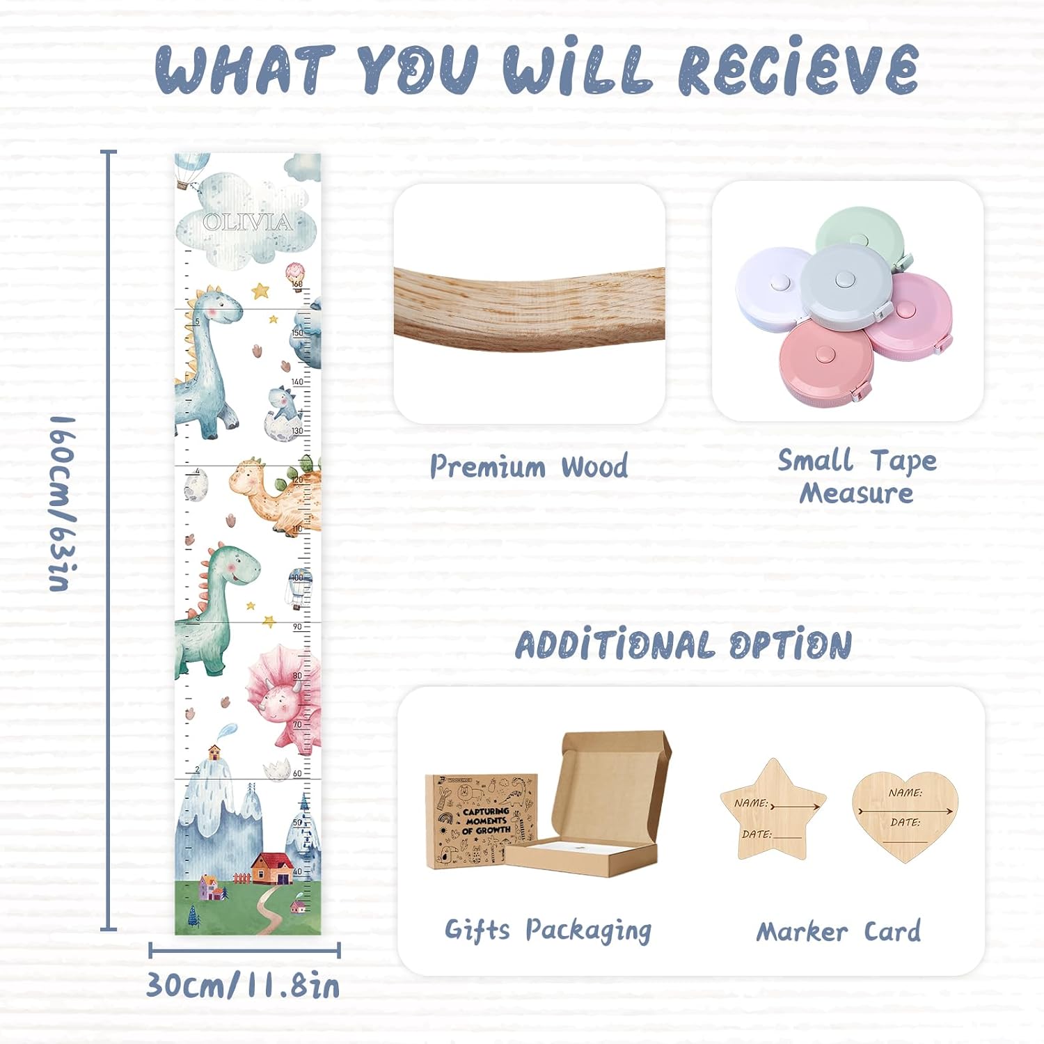 - Personalized Name Growth Chart: The height ruler wall tape can customize the name, measurement scale (centimeters or inches) for a personal touch, attracting the baby's attention. Kids height wall chart creates precious childhood memories, making measuring height interesting and not boring.