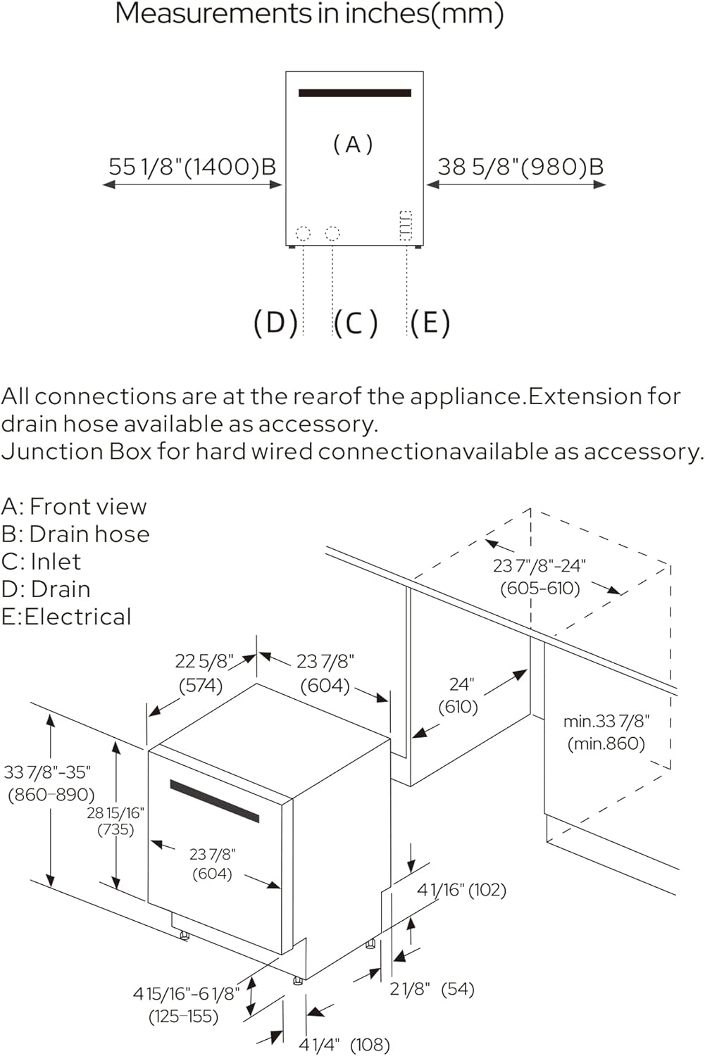 - Dimensions β 33 7/8" to 35β H x 23 7/8" W x 22 5/8" D; Cut-Out: 33 7/8" H to 35β H x 23 7/8" to 24β W x 24" D
