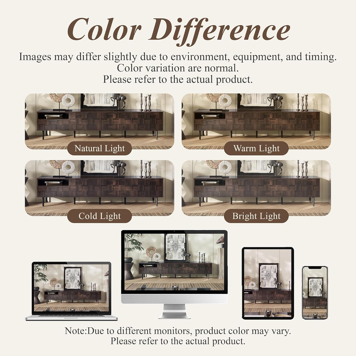 - Mid-Century Modern Appeal β This TV stand blends retro charm with contemporary flair, featuring a clean-lined silhouette, elegant wood finishes, and a unique checkered door design that adds texture and visual interest to your living room.