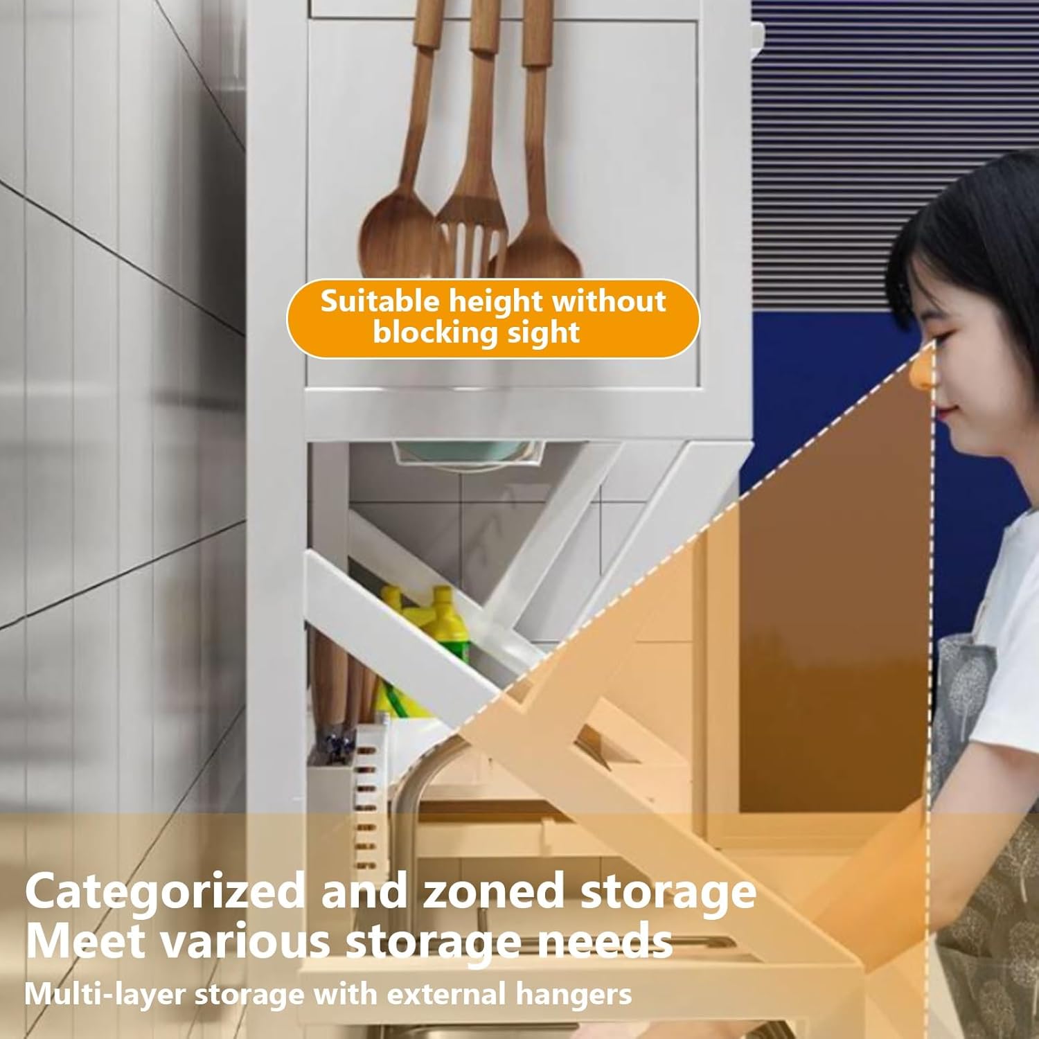 Kitchen sink rack dishwashing sink countertop dustproof cupboard storage multifunctional tableware storage drain rack double layer,KeepKitchen Sink Shlef Organized Space-Saving(White,75cm/29.5in)