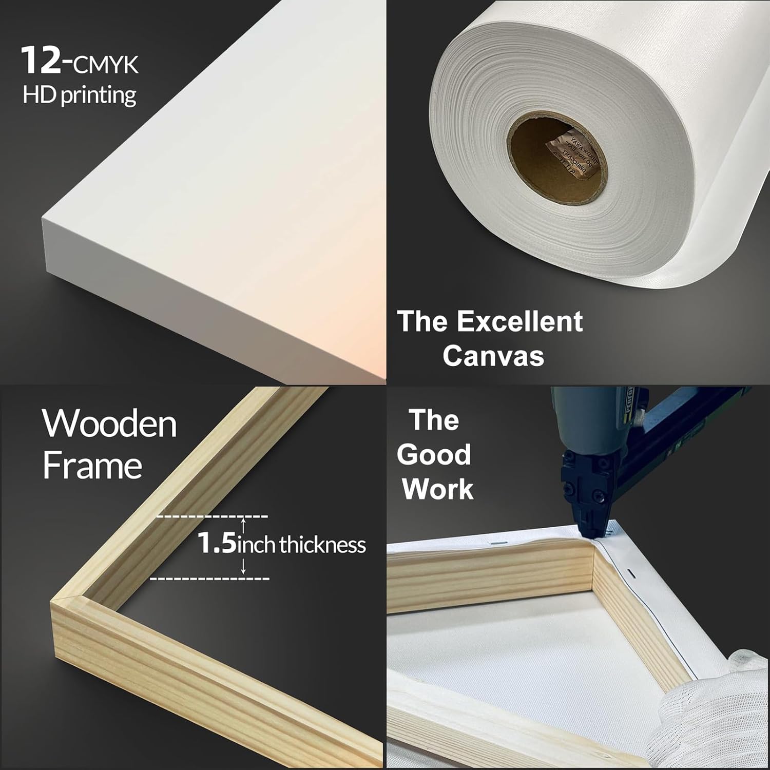 - High Quality: Our canvas art is bright and colorful. The texture is fine and has no peculiar smell, creating a healthy and comfortable life. Canvas art is waterproof, not easy to fade, strong and durable. Pictures and vivid colors printed on high-quality thick canvas give you the most realistic experience.Add a relaxing artistic vibe to your room. Pre-stretched canvas on wooden frame comes complete with mounting hardware for easy installation.