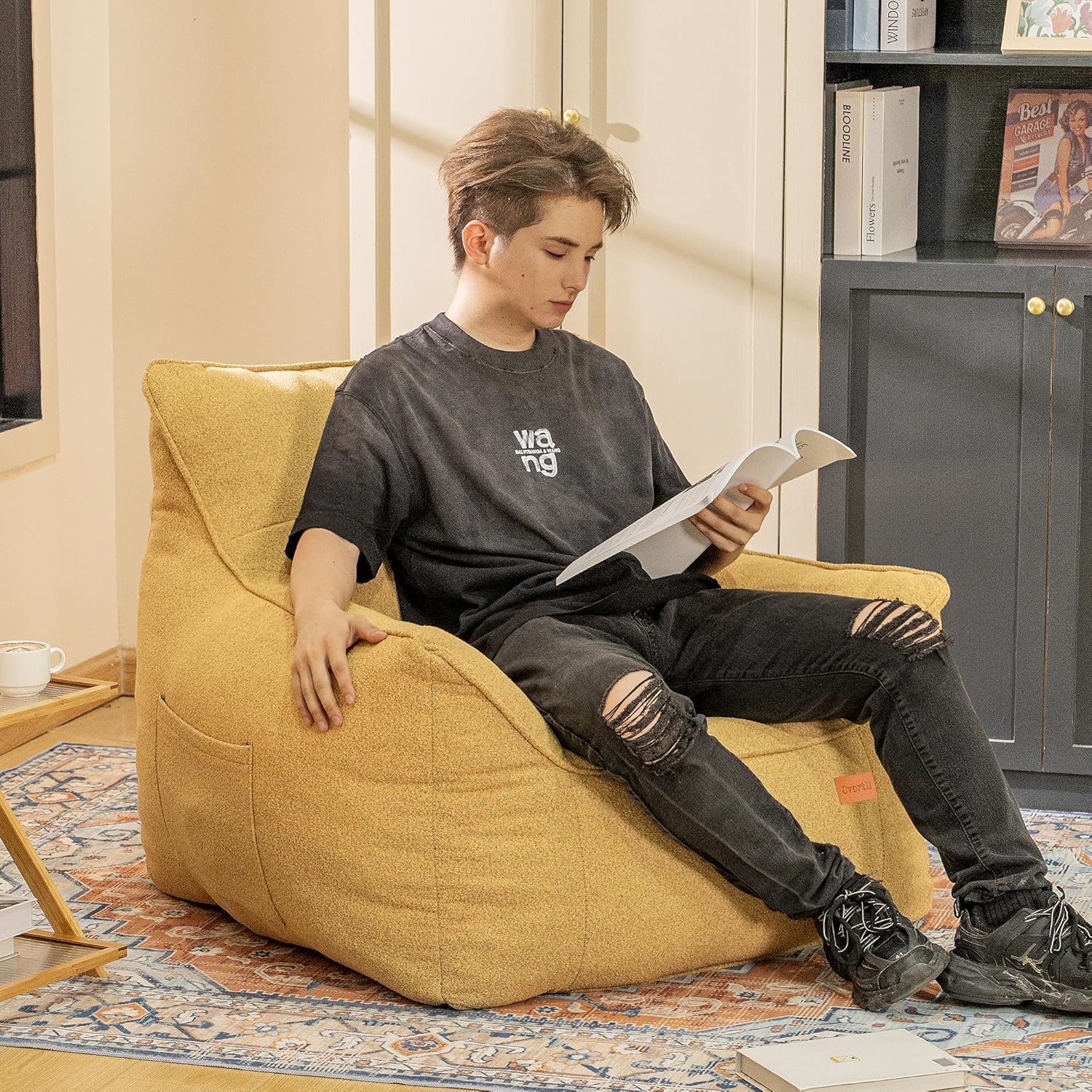 - Ergonomic Design: The adult bean bag chair stuffed high quality, high-density and high resilience sponge foam, designed with ergonomic backrest and two large armrests, which make sitting or lying more supportive. The cozy bean bag chair sofa measures 37" x 34.25" x 29.52", which is spacious enough to fit any body type, and great for adults, teenagers.