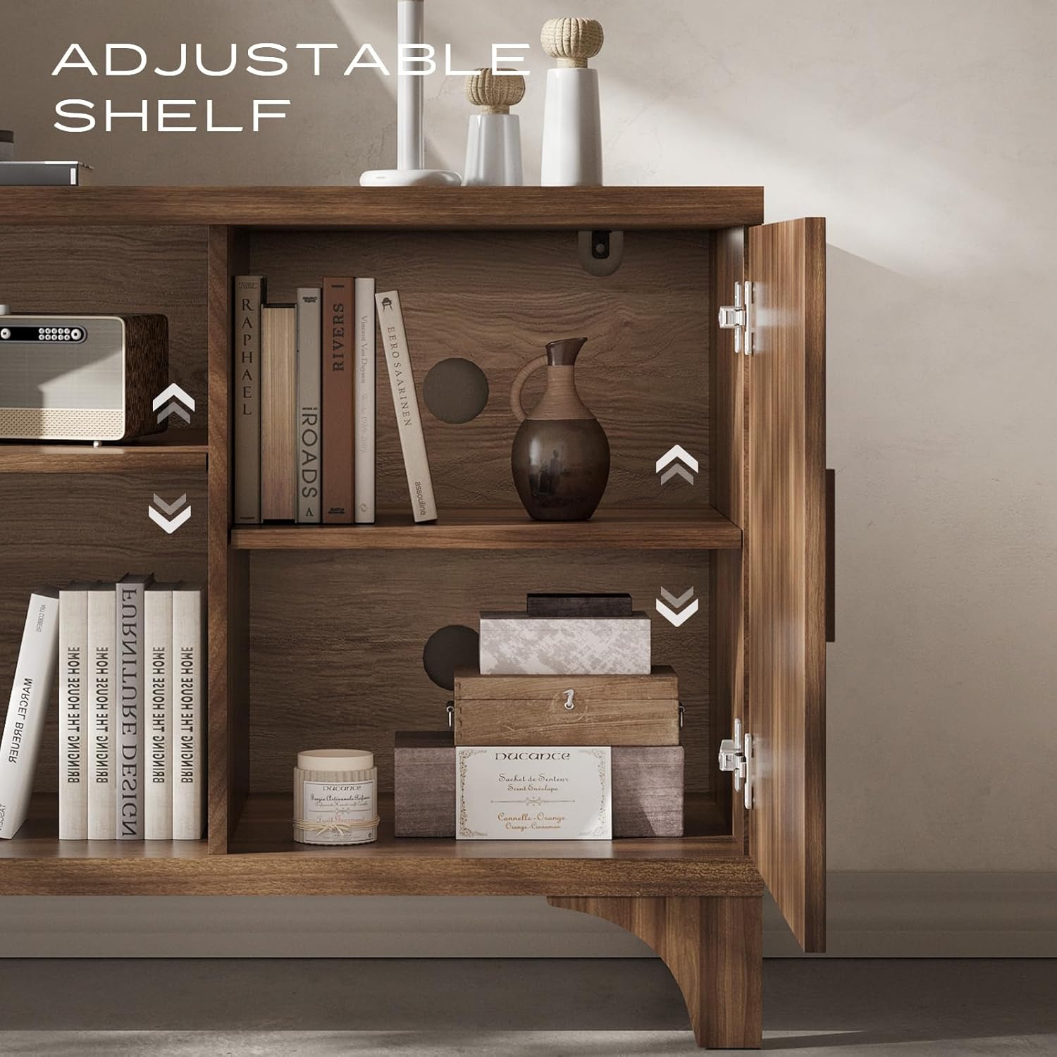 - [Durability You Can Trust]- Built with reinforced MDF certified by CARB Phase 2 and anti-scratch rubber feet, this media console offers superior stability and floor protection. It’s designed to withstand the wear and tear of daily life while providing lasting durability.