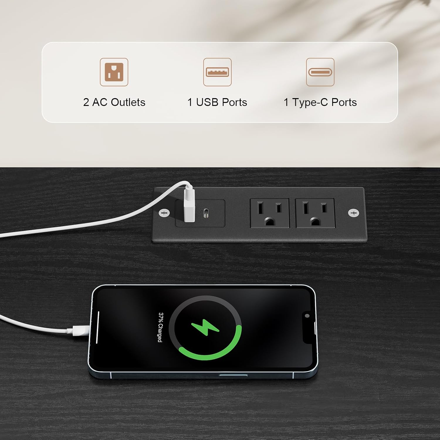 - Integrated Charging Station: The TV cabinet is equipped with power outlets and cable ports for convenient charging and device connectivity. No need to purchase additional power cords
