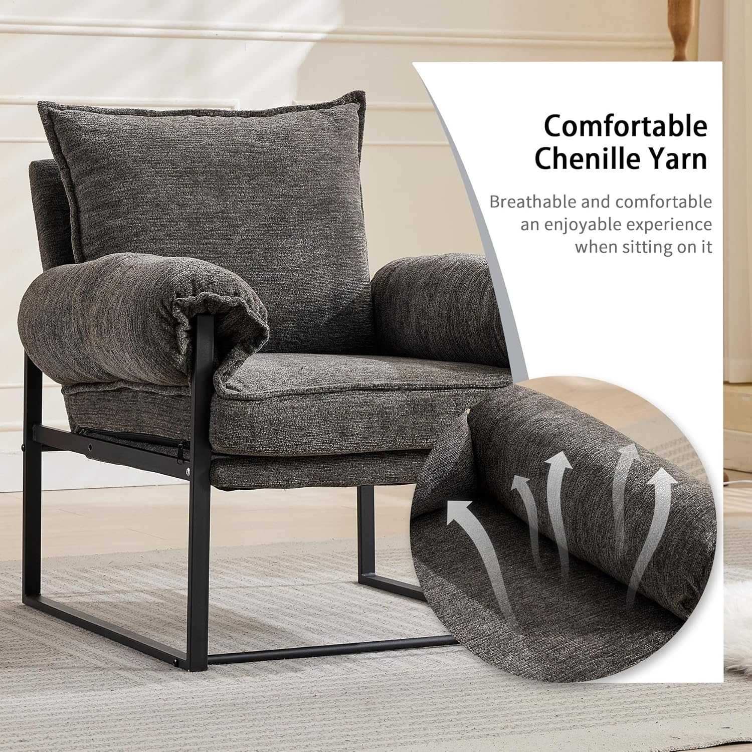 YISHENG Accent Chair with 6-Angle Adjustable Backrest, Chenille Fabric Living Room Chair Upholstered Lounge Chair, Modern Chair Cozy Reclining Chair for Reading Room, 1PC Gray