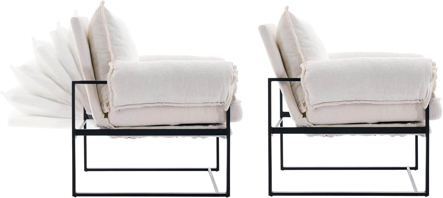 YISHENG Accent Chair with 6-Angle Adjustable Backrest, Chenille Fabric Living Room Chair Upholstered Lounge Chair, Modern Chair Cozy Reclining Chair for Reading Room, Set of 2 White