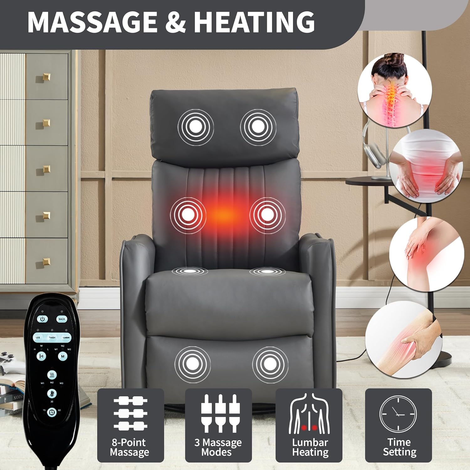 - [Premium Relaxation, Exceptional Value] Discover the perfect blend of features β swivel, rocker, recliner, glider, and massage β in one affordable recliner. An ideal glider recliner for your living room sanctuary.