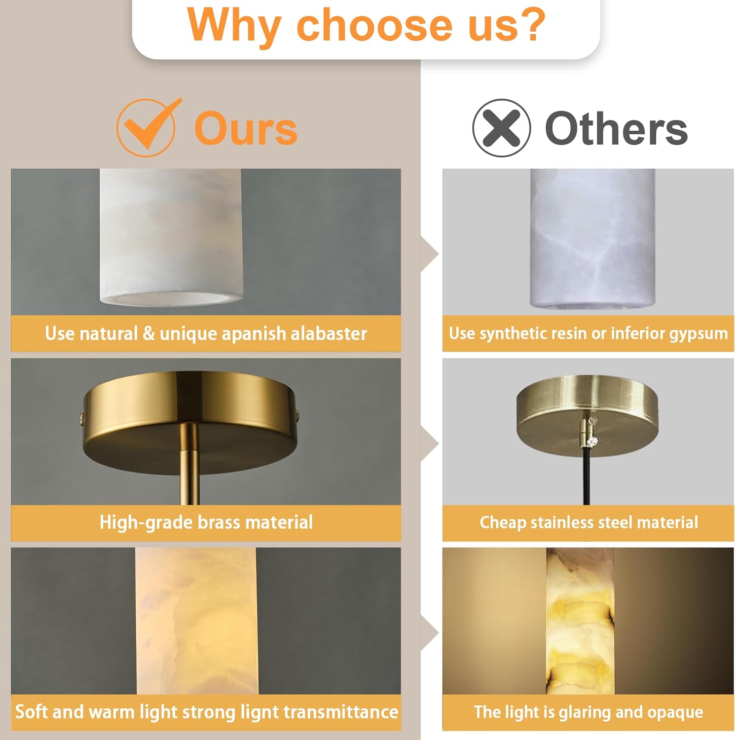 • 【Natural Spanish Alabaster】Alabaster lamp is made of alabaster imported from Spain, a natural stone solidified by volcanic lava for millions of years. It is strong and durable, and the lighting effect is bright and non-glare. Each piece of alabaster is carefully selected and hand-polished, presenting a delicate and charming appearance, enhancing the natural beauty of the stone.