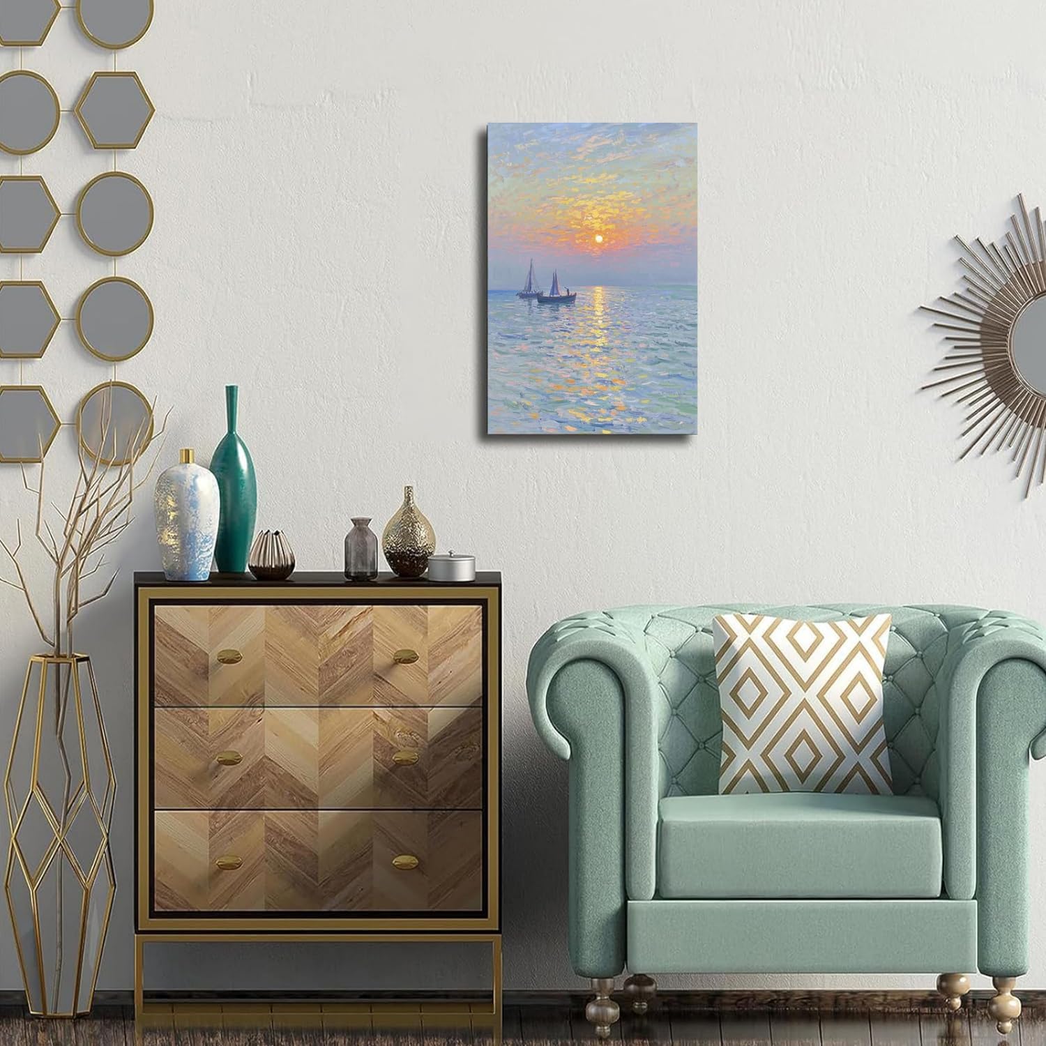 Coastal sailboat scenery poster art decor ocean nautical room decor beautiful sailboat seascape decor suitable for beach villa
