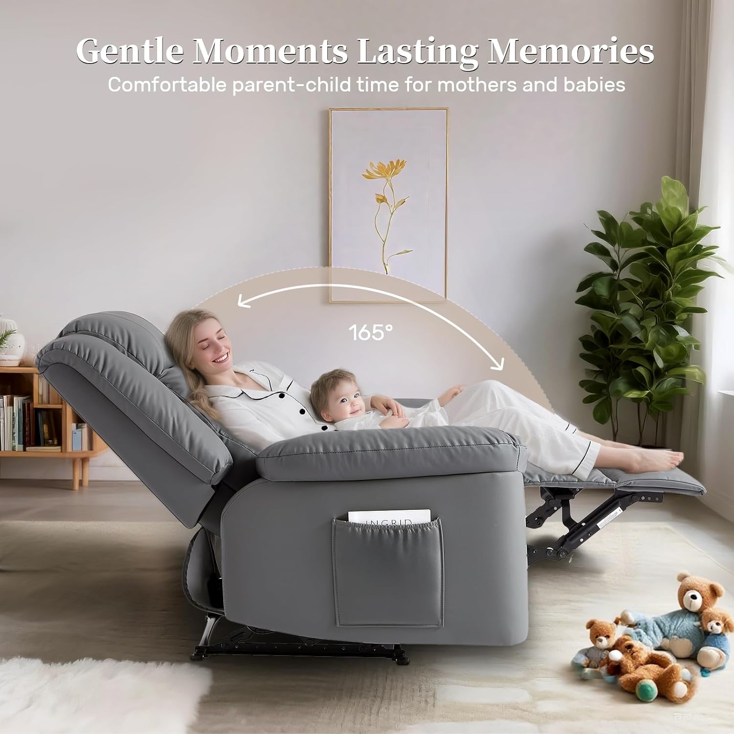 - Manual Recliner with Tilt Backrest & Footrest - The adjustable backrest tilts freely from 115° to 165°, and the footrest can be easily activated by the side pull handle, transforming the reclining chair into a soft lounger. On our recliner chairs for adults, you can fully stretch your body, and meet your various relaxation and usage needs. It’s perfect for reading, watching movies, napping, or winding down with a drink in the evening, giving you a consistently comfortable reclining angle.