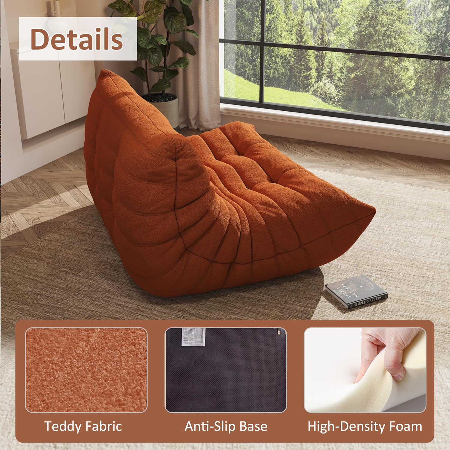 Bean Bag Chairs for Adults Giant Bean Bag Chair, 2 Seater with Memory Foam Filled Fireside Chair, Lazy Sofa Lounge Floor Sofa for Living Room, Bedroom, Office, No Assembly Required. (Orange)