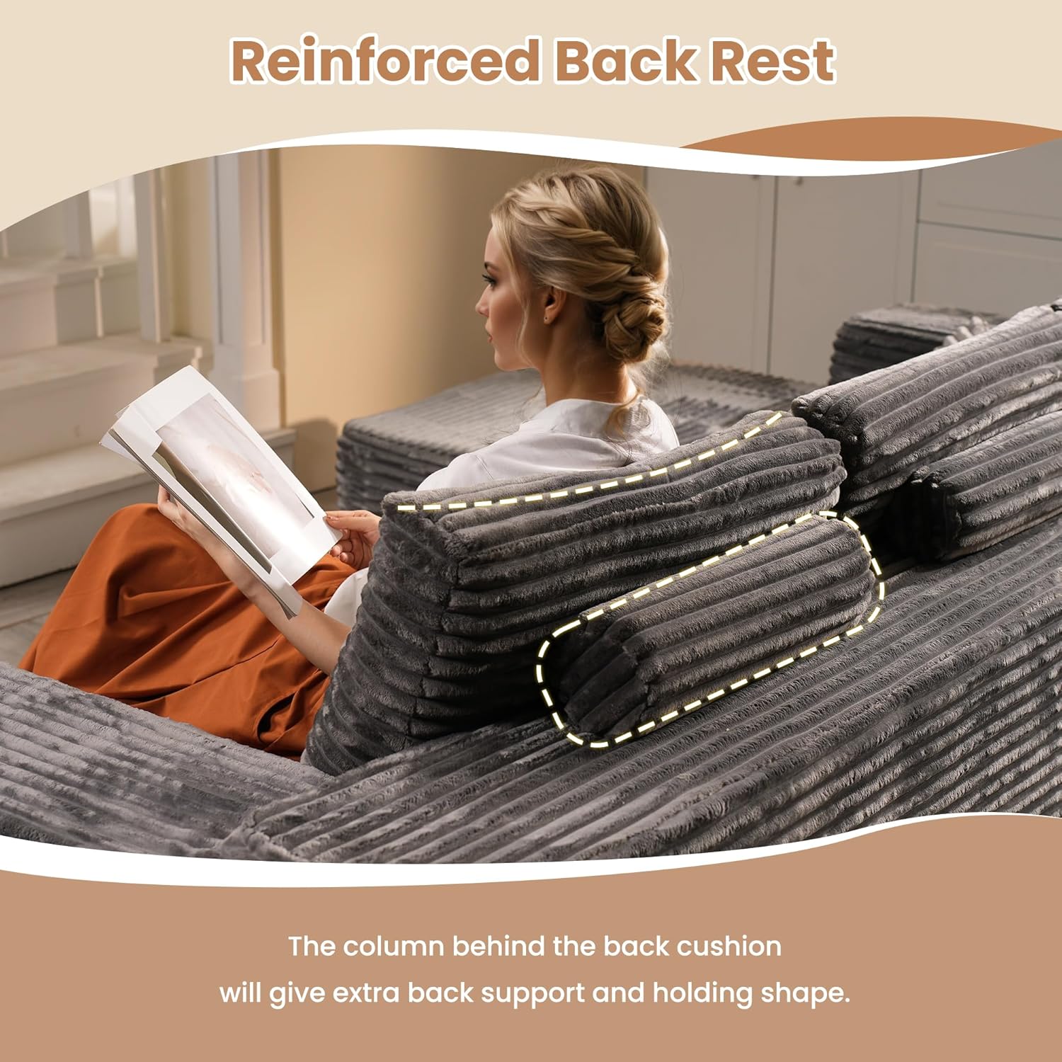 HOOOWOOO Cloud Sectional Couches for Living Room,Modular Sectional Sofa No Assembly,Plush Corduroy Large Floor Couch Furniture Set with Deep Seat Left Chaise L Shape(Gray)